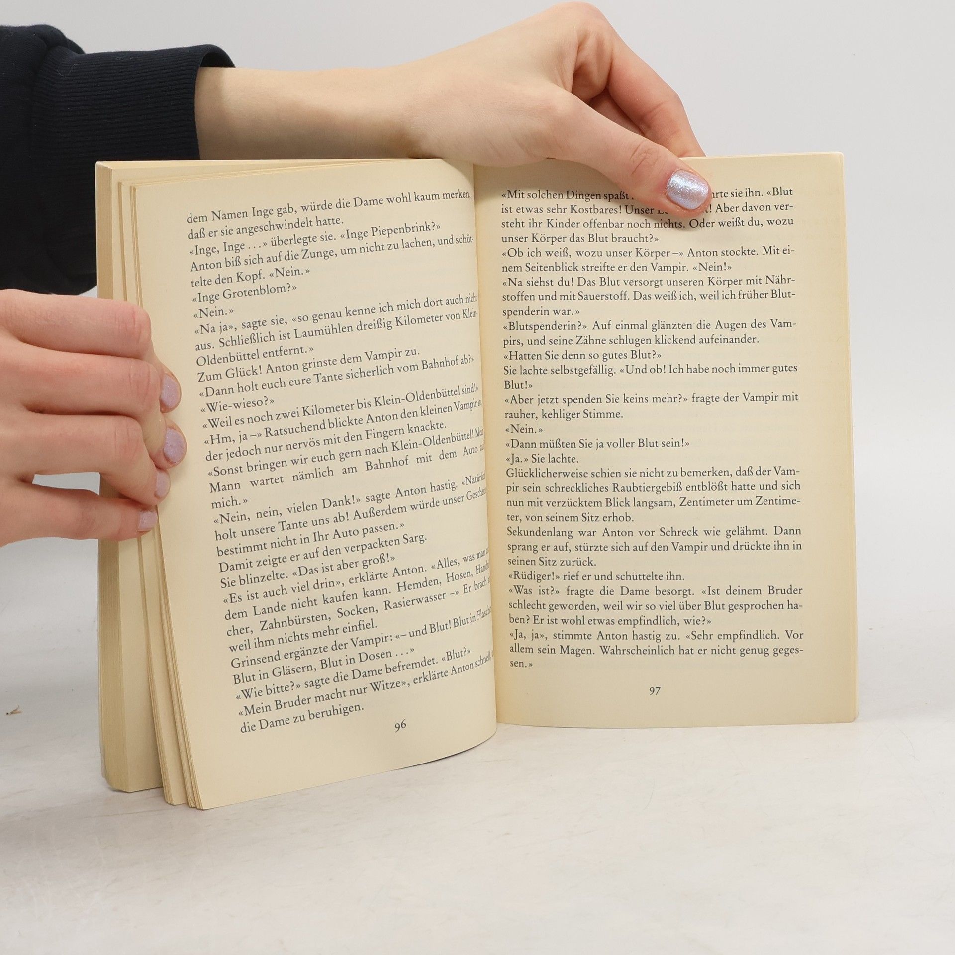 Urlaub auf dem Bauernhof? Anton ist nicht begeistert von der Ferienplanung seiner Eltern. Um nicht vor lauter Langeweile einzugehen, überredet er den kleinen Vampir zum Mitkommen. Schließlich hat Anton ihm ja auch schon mal aus der Klemme geholfen. Doch mit einem Vampir auf Reisen zu gehen bringt gewisse Schwierigkeiten mit sich. Denn gewöhnlich fahren Vampire ja nicht mit dem Zug ...