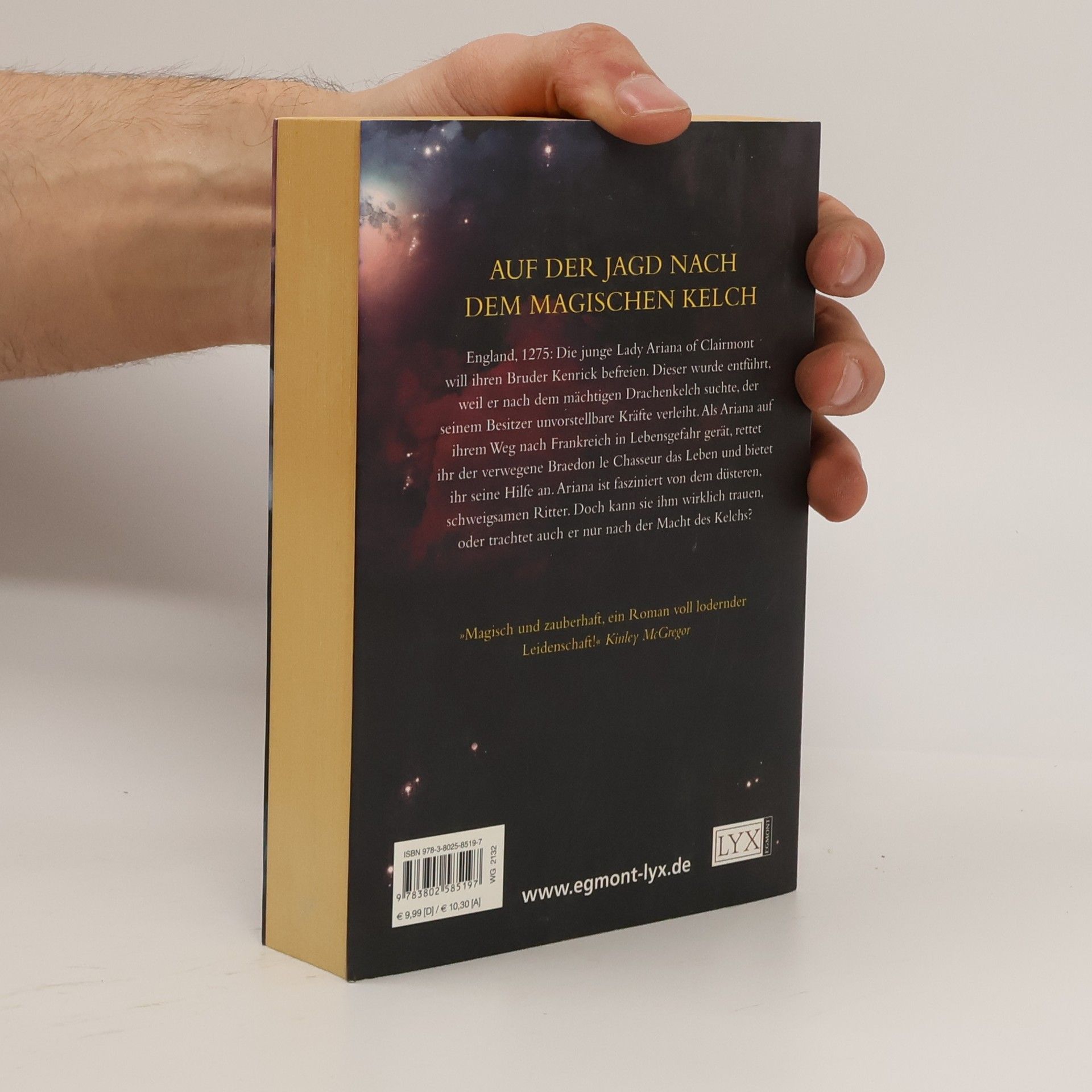 England, 1275: Die junge Lady Ariana of Clairmont ist auf der Suche nach ihrem entführten Bruder Kenrick. Als ihr Leben in Gefahr ist, rettet ihr der verwegene Braedon le Chasseur das Leben und bietet ihr seine Hilfe an. Doch Kenricks Verschwinden ist kein Zufall - der ehemalige Templer hat geheime Forschungen über einen mit vier magischen Steinen besetzten Kelch angestellt, der seinem Besitzer unvorstellbare Macht verleiht. Einst ist der Kelch in vier Teile zerbrochen, und die Bruchstücke sind verschollen. Hat Braedon etwas mit Kenricks Verschwinden zu tun?