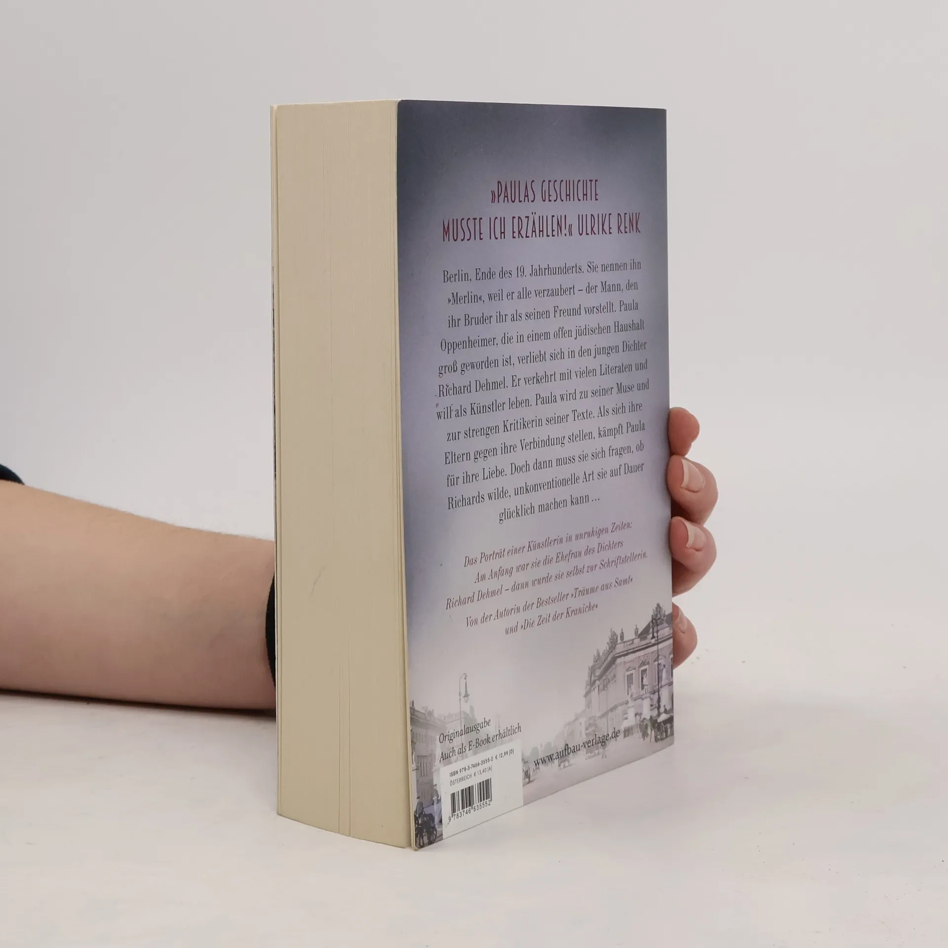 „Paulas Geschichte musste ich erzählen!“ Ulrike Renk. Berlin, Ende des 19. Jahrhunderts. Paula Oppenheimer spielt begeistert Klavier aber ihre große Leidenschaft sind die Worte. In ihrer Familie ist sie bekannt für ihre Reime und Sprachspiele. Da ihre Eltern sich jedoch eine weiterführende Ausbildung nicht leisten kann, zieht sie schweren Herzens zu ihrer vermögenden Tante. Von ihr wird sie in die Berliner Kunst- und Literaturwelt eingeführt, besucht Museen, Theater und die Oper. Gemeinsam veranstalten die beiden Frauen einen Salon, in dem sich die Berliner Bohème trifft. Dann lernt Paula den Dichter Richard Dehmel kennen. Die beiden verlieben sich unsterblich, Paula wird zu seiner Muse und strengen Kritikerin. Als sich ihre Eltern gegen die Verbindung stellen, kämpft Paula für ihre Liebe. Doch dann wird ihr mehr und mehr bewusst, dass Richards wilde und unkonventionelle Art sie auf Dauer nicht glücklich machen kann. Angetrieben von einem starken Willen und ihrer eigenen Kreativität zieht sie ihre Konsequenzen … Von der Autorin der Bestseller „Träume aus Samt“ und „Die Zeit der Kraniche“. Die neue Saga der Bestsellerautorin Ulrike Renk.