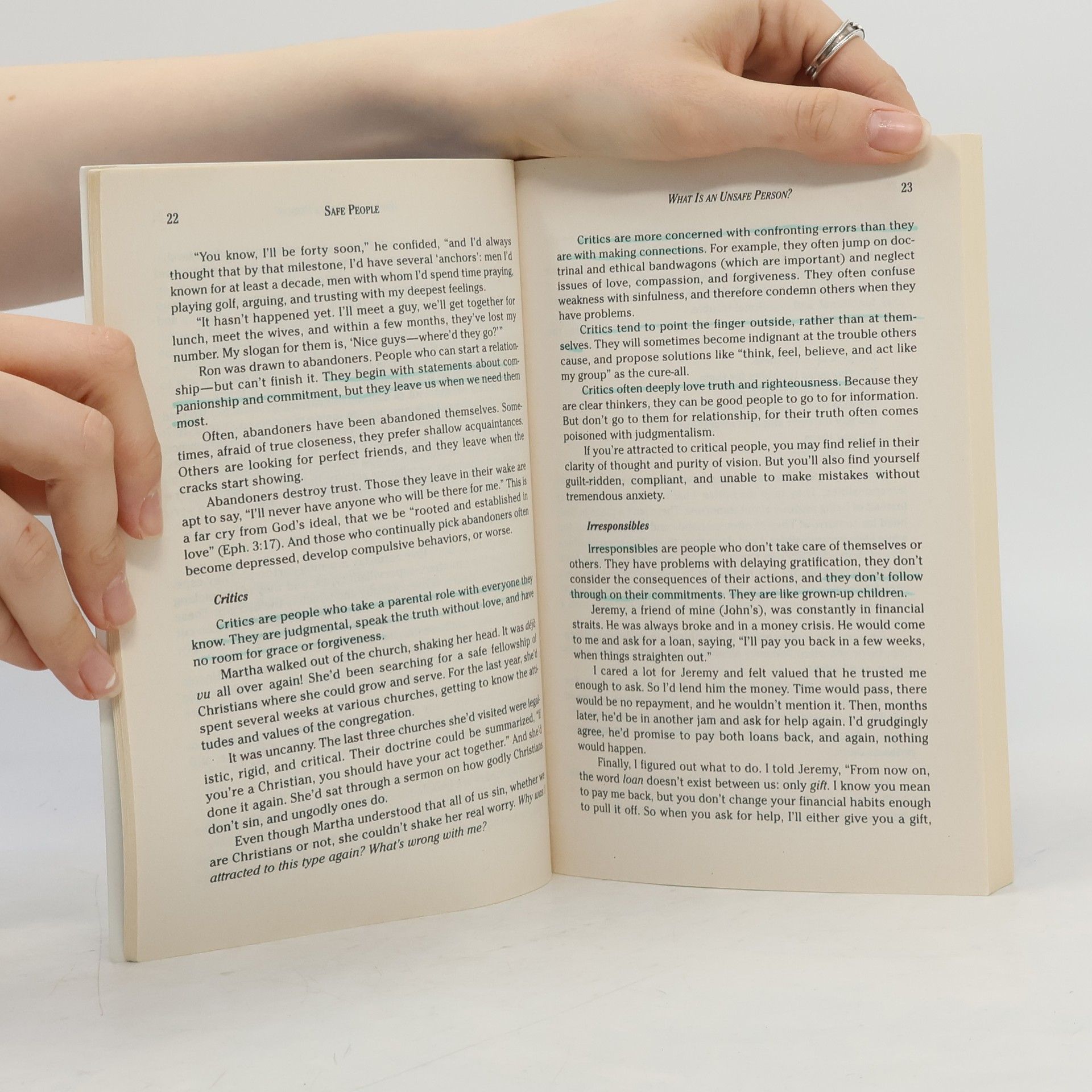 Too many of us have invested ourselves into relationships that left us deeply wounded. We've been abandoned or taken advantage of, and left with little to show for what we've given. We've lost our sense of security and personal value in the process. And what's worse, we tend to either repeat the same mistakes of judgment over and over . . . Or else lock the doors of our hearts entirely and throw away the key. Why do we choose the wrong people to get involved with? Is it possible to change? And if so, where does one begin? Drs. Henry Cloud and John Townsend offer solid guidance for making safe choices in relationships, from friendships to romance. They help identify the nurturing people we all need in our lives, as well as ones we need to learn to avoid. Safe People will help you to recognize 20 traits of relationally untrustworthy people. Discover what makes some people relationally safe, and how to avoid unhealthy entanglements. You'll learn about things within yourself that jeopardize your relational security. And you'll find out what to do and what not to do to develop a balanced, healthy approach to relationships.