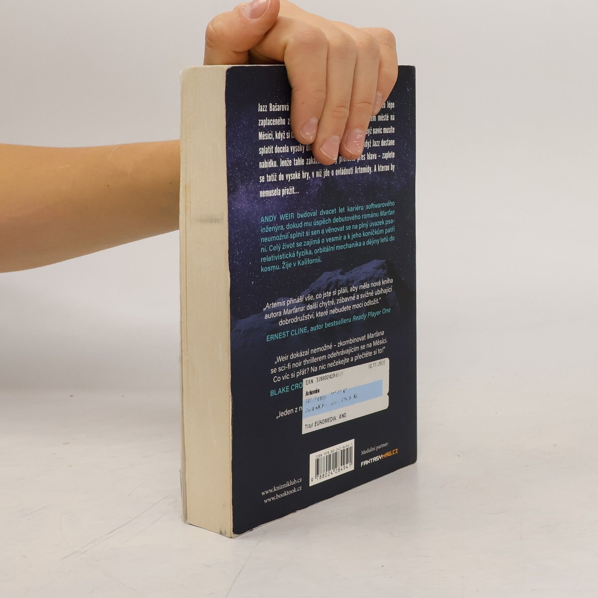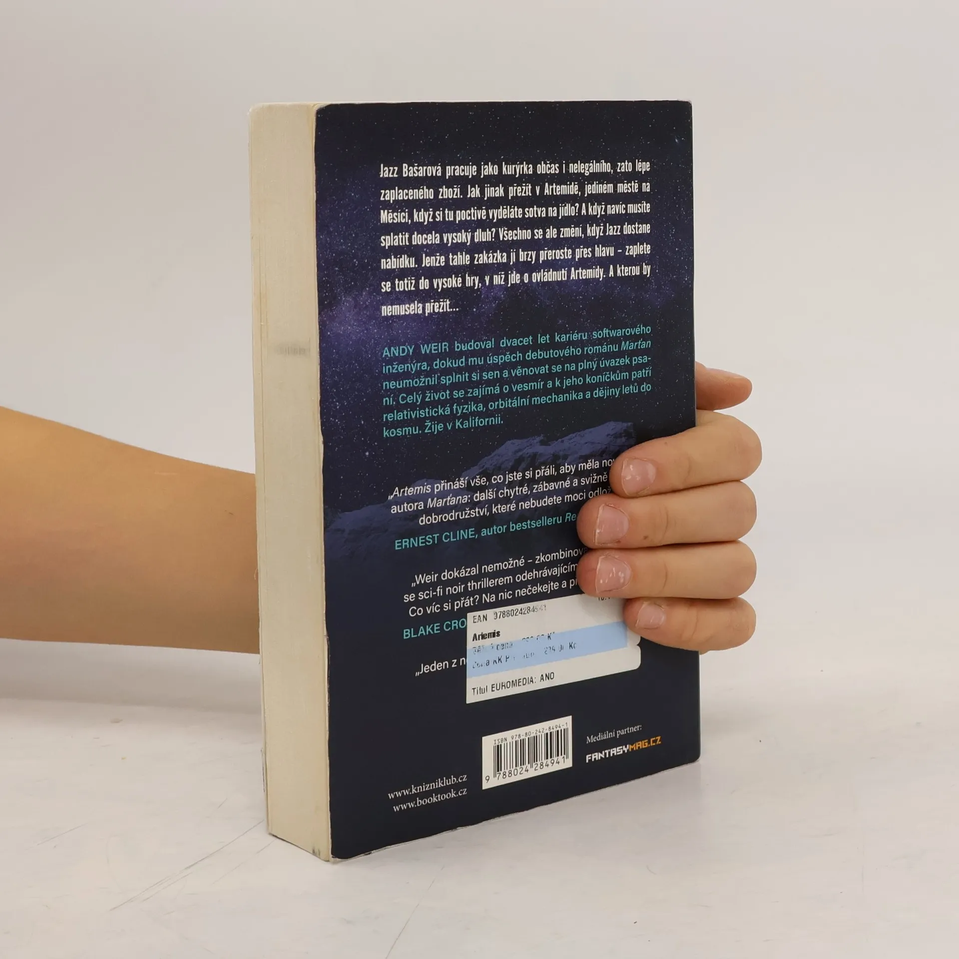 Autor celosvětového hitu Marťan se znovu hlásí o pozornost milionů čtenářů: tentokrát sci-fi thrillerem z blízké budoucnosti – napínavou noir kriminálkou odehrávající se na Měsíci. Jazz Bašarová pracuje jako kurýrka. Občas i nelegálního, čili pochopitelně lépe zaplaceného zboží. Jak jinak přežít v Artemidě, jediném městě na Měsíci, když nejste bohatý turista nebo výstřední milionář? Když si tu poctivě vyděláte sotva na jídlo? Když ani příležitostné pašování nestačí na slušnější bydlení? Všechno se ale změní v okamžiku, kdy Jazz dostane nabídku provést velkou věc. A to za odměnu tak závratnou, že se prostě neodmítá. Jenže tahle zakázka jí brzy přeroste přes hlavu – zaplete se totiž do vysoké hry, v níž jde o ovládnutí Artemidy. A kterou by nemusela přežít…