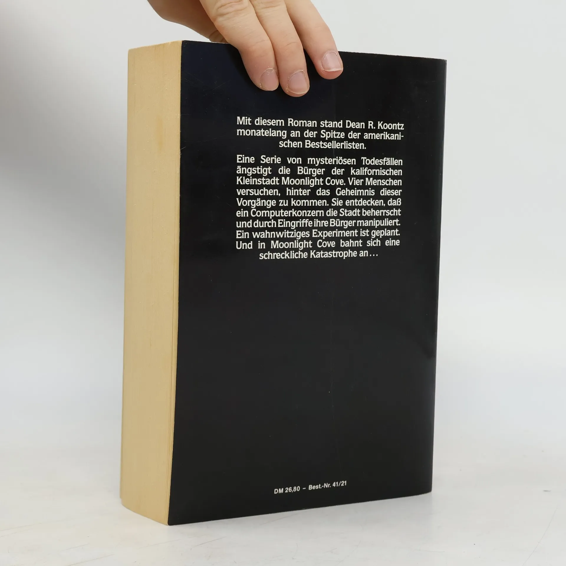 Nie war das Grauen bedrohlicher ? Tessa Lockland kann den angeblichen Selbstmord ihrer Schwester nicht glauben. Deshalb macht sie sich auf den Weg nach Moonlight Cove, der kalifornischen Kleinstadt, in der ihre Schwester zuletzt gelebt hat. Auch ein FBI-Agent trifft dort ein, um eine Reihe seltsamer Todesfälle zu klären. Der an den Rollstuhl gefesselte Vietnam-Veteran Harry Talbot hat ihn verständigt, da auch er schon länger seltsame Ereignisse beobachtet. Und schließlich ist da noch das Mädchen Chrissie Foster, deren Eltern sich zu unheimlichen Wesen verwandeln. Alle Fäden scheinen bei der geheimnisvollen Computerfirma New Wave zusammenzulaufen, die ein wahnwitziges Experiment mit den Bürgern der Stadt plant.