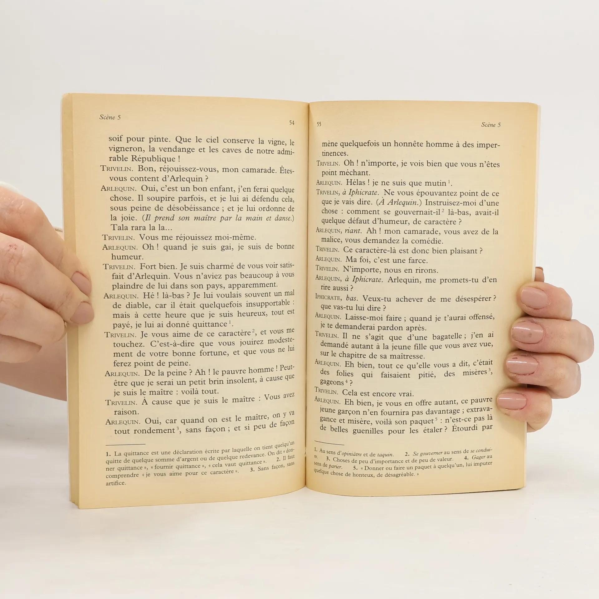 Des naufragés jetés par la tempête dans l'île des Esclaves sont obligés, selon la loi de cette république, d'échanger leurs conditions : de maître, Iphicrate devient l'esclave de son esclave Arlequin, et Euphrosine, de maîtresse, devient l'esclave de son esclave Cléanthis. Mais cet échange ne fait que remplacer une oppression d'usage et de tradition par une oppression de rancune et de vengeance. Seule la transformation des coeurs peut rendre l'inégalité des rangs acceptable et juste en faisant reconnaître par tous l'égalité des âmes. Cette transformation est l'œuvre d'Arlequin, qui pardonne à son maître, lui rend son pouvoir, et dont la générosité est contagieuse. L'Île des Esclaves, comédie rapide et intense, où triomphe Arlequin, réunit, comme souvent chez Marivaux, la bouffonnerie et le sublime.