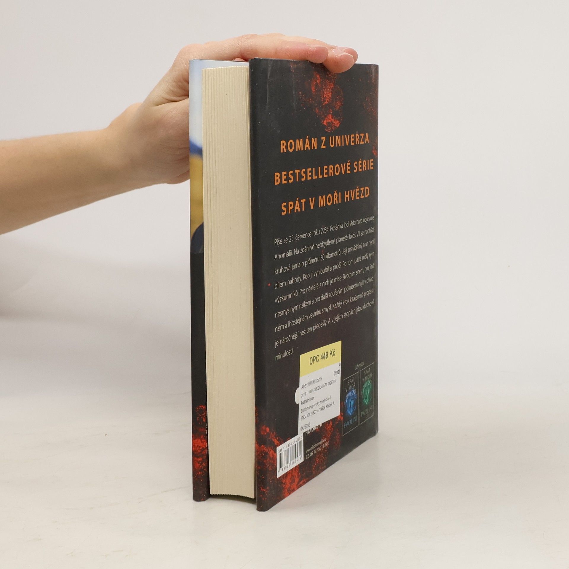 Strhující román z univerza bestsellerové série Spát v moři hvězd. Píše se 25. července roku 2234: Posádka lodi Adamura objevuje Anomálii. Na zdánlivě neobydlené planetě Talos VII se nachází kruhová jáma o průměru 50 kilometrů. Její pravidelný tvar není dílem náhody. Kdo ji vyhloubil a proč? Po tom pátrá malý tým výzkumníků. Pro některé z nich je mise životním snem, pro jiné nesmyslným rizikem a pro další zoufalým pokusem najít v chladném a lhostejném vesmíru smysl. Každý krok k tajemné propasti je náročnější než ten předešlý. A v jejich stopách jdou duchové minulosti.