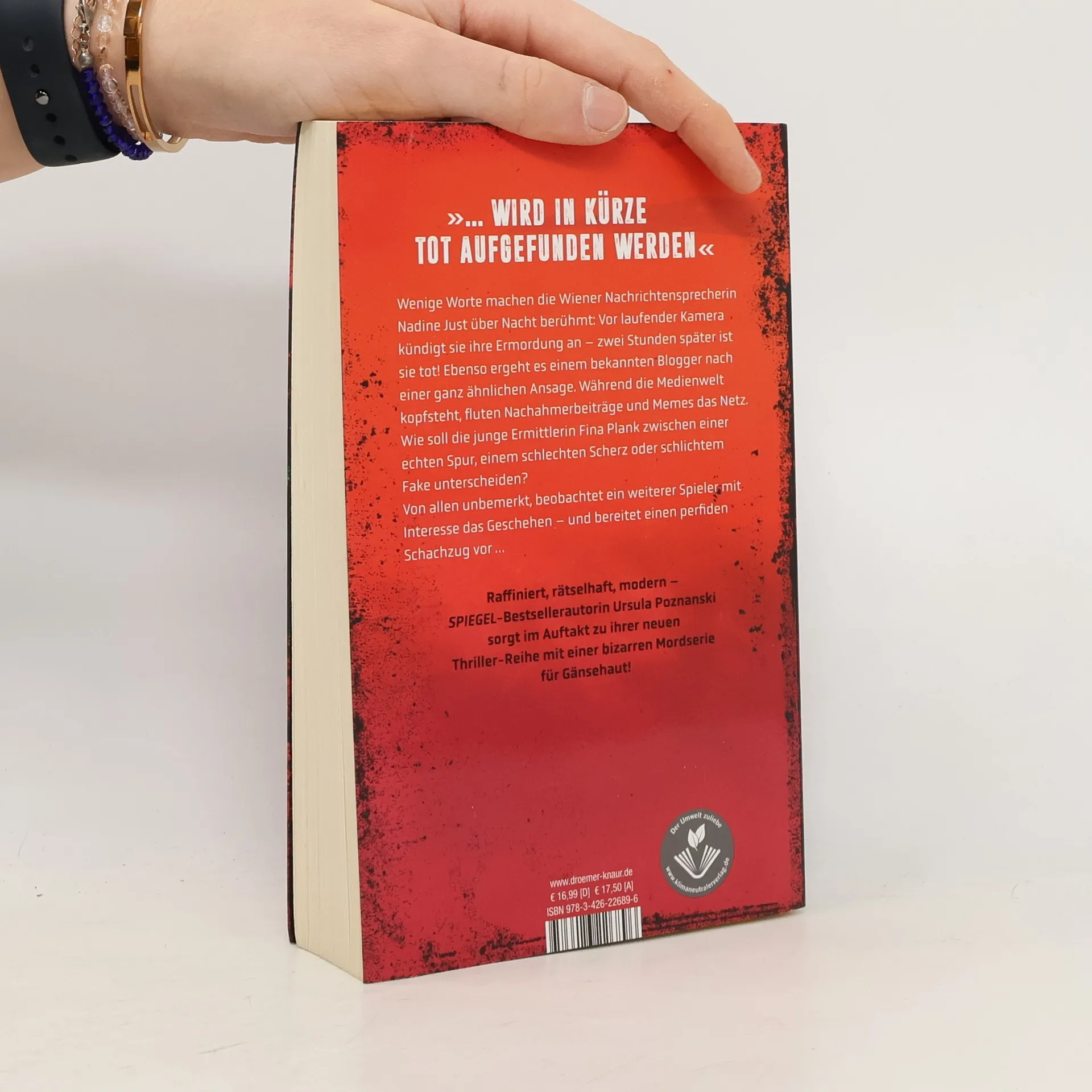 Eine aufstrebende Wiener Nachrichtensprecherin kündigt vor laufender Kamera ihre Ermordung an und ist nur zwei Stunden später tot. Ähnlich ergeht es einem Blogger, was die österreichische Medienwelt in Aufruhr versetzt. Der Hashtag #inkürzetot wird zum Trend, während Nachahmer-Beiträge und Memes das Netz überfluten. Die junge Ermittlerin Fina Plank steht vor der Herausforderung, zwischen echter Spur, Scherz und Fake zu unterscheiden. Im Fokus ihrer Ermittlungen steht Nadines Ex-Freund Tibor Glaser, ein charismatischer Werbefachmann, der seine Unschuld beteuert. Während die Beweise gegen ihn sich häufen, beobachtet ein unbekannter Akteur das Geschehen und plant einen raffinierten Schachzug. Die Bestseller-Autorin Ursula Poznanski schafft mit dieser Geschichte eine spannende Atmosphäre, in der die Grenzen zwischen Realität und Inszenierung verschwimmen. Die geheimnisvolle Erzählerfigur, die die Handlung begleitet, weckt Fragen über ihre wahren Absichten und die Verknüpfung der verschiedenen Erzählstränge. Ein fesselnder Thriller, der die Leser*innen in seinen Bann zieht und sie dazu anregt, die Motive hinter den Geschehnissen zu hinterfragen.