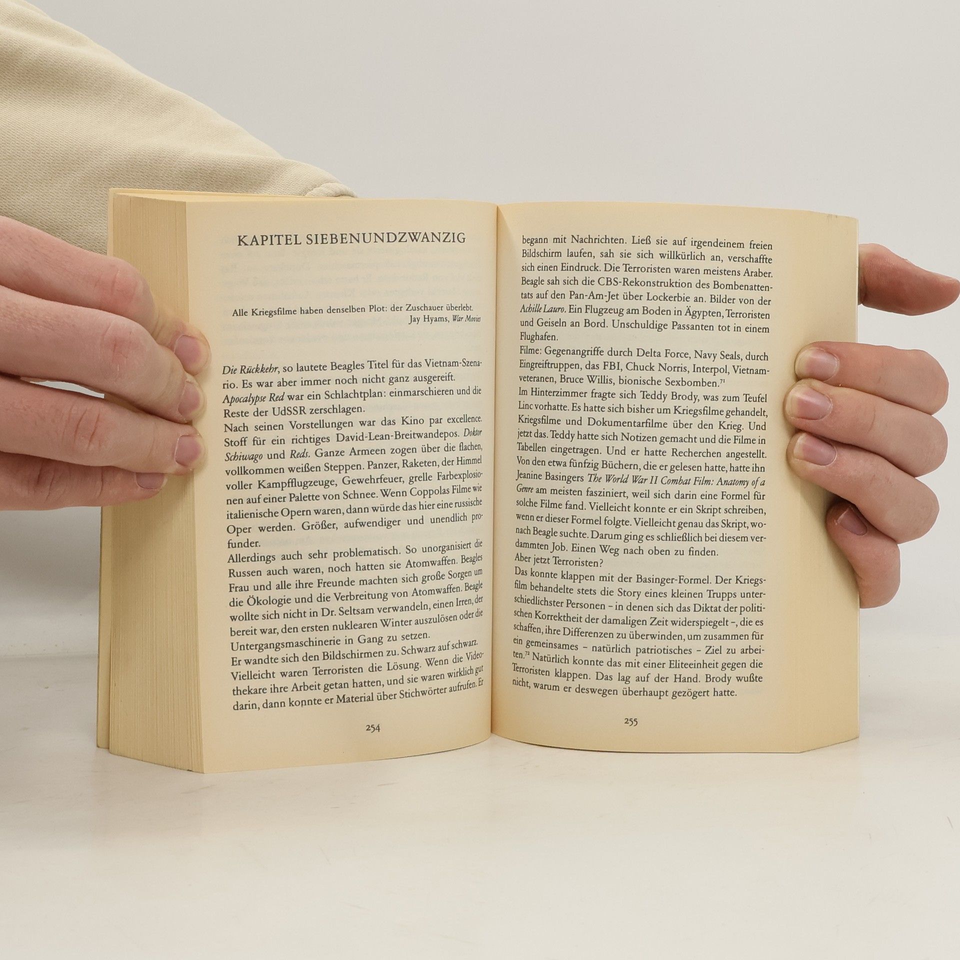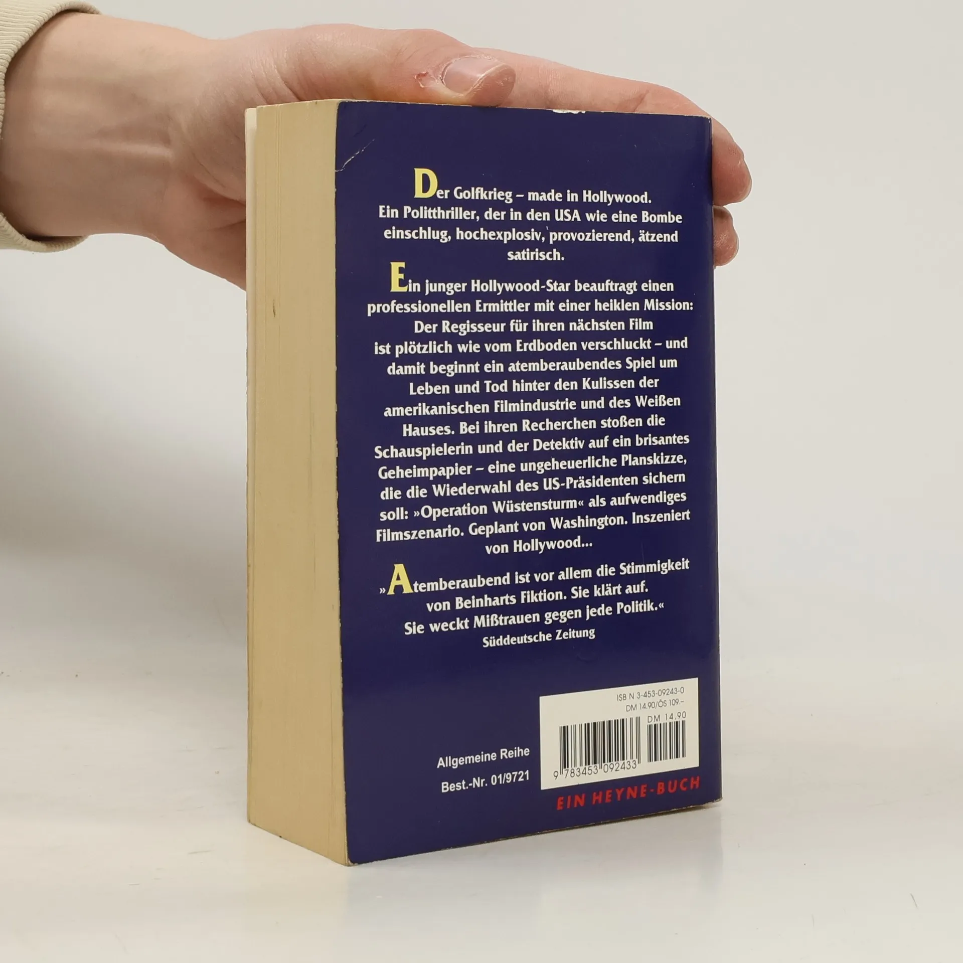 Kurz vor seinem Tod plant Lee Atwater, der Berater des US-Präsidenten George Bush sen, einen letzten, spektakulären Schachzug, der dem Präsidenten zur Wiederwahl verhelfen soll. Und der einzige Mann, der dieses ungeheuerliche Vorhaben in die Tat umsetzen kann, ist Hollywoods berühmtester Regisseur. Als eine junge Schauspielerin durch Zufall Wind von diesem Projekt kriegt, bittet sie den Privatdetektiv Joe Broz um Hilfe – und stößt auf das Skript zum Golfkrieg! Die beiden werden zu Gejagten in einem atemberaubenden Spiel um Leben und Tod hinter der Kulissen der amerikanischen Filmindustrie, in den Amtszimmern des Weißen Hauses und auf den Straßen von Los Angeles. In brillanten Dialogen, intimen Geständnissen und schneller Schnitttechnik gelingt Beinhart eine raffinierte Satire, in der Fiktion und Wahrheit längst ununterscheidbar geworden sind. Nicht nur ein fesselnder Thriller, sondern auch ein politischer Roman, der die neuen Machtverhältnisse in der westlichen Welt und den direkten Einfluss der Medien zum Thema hat. Eine ebenso unterhaltsame wie spannende Fabel über Politik und Propaganda.