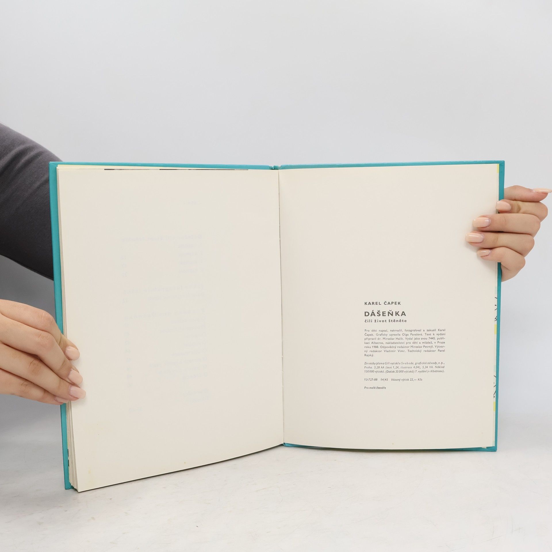 Jedna z nejoblíbenějších českých dětských knížek. Karel Čapek, který ji pro děti „napsal a zakusil“, si pořídil do domu na Vinohradech nejprve airdala, pak drsnosrstého teriéra Iris, mámu Dášeňky. Tahle krásná knížka kromě Života štěněte obsahuje i kapitoly Jak se fotografuje štěně a Pohádky pro Dášeňku, O psích zvycích nebo třeba O lidech.
