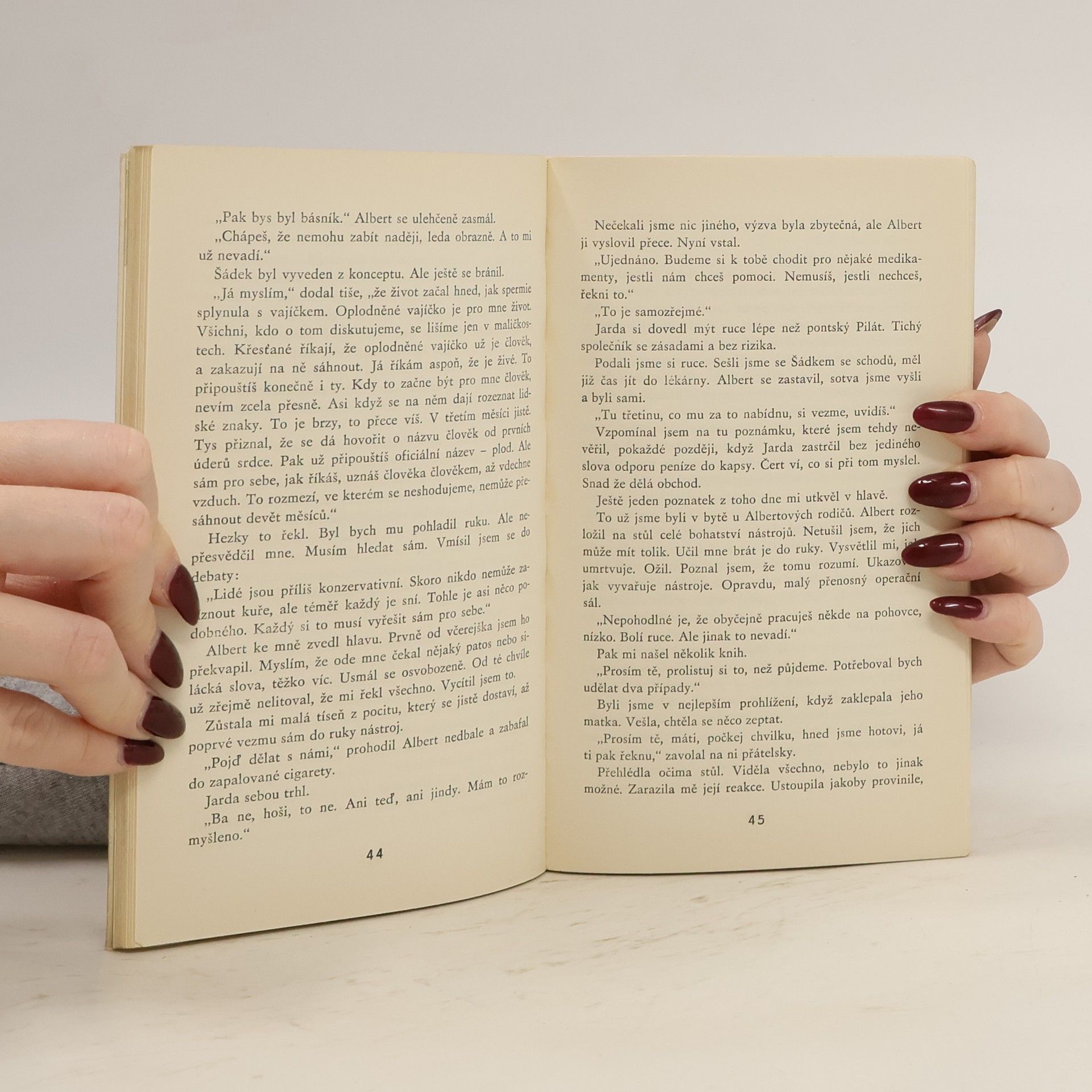 Psychologický román, v němž autorka, mladá lékařka, řeší závažnou společenskou otázku: zda totiž lékař má právo bez závažných zdravotních, sociálních nebo eugenických příčin zničit zárodek v lidském těle. Příběh, vyprávěný retrospektivně v rámci jedné noci, vrcholí dramaticky smrtí mladé ženy, u níž měl být nedovolený zákrok proveden. Tragický účin je zvýšen tím, že nešťastná oběť je v blízkém příbuzenském a citovém vztahu k oběma medikům, kteří se podjali provedení pokoutního, v tomto případě vražedného činu. S oběma neodpovědnými mediky ostře konstrastuje starý lékař Ruth, hájící důsledně humanistické poslání medicíny. Hlavní význam románu je v přesvědčivém zdůraznění ethické náročnosti zdravotnické práce.