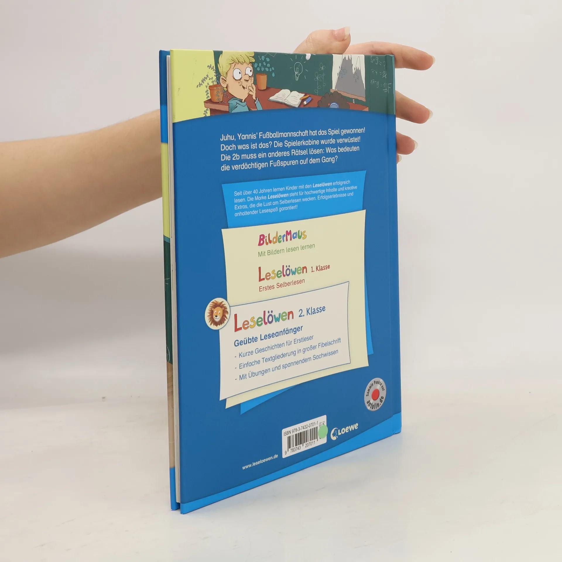 Juhu, Yannis' Fußballmannschaft hat das Spiel gewonnen! Doch was ist das? Die Spielerkabine wurde verwüstet! Die Klasse 2b muss ein anderes Rätsel lösen: Was hat es mit den verdächtigen Fußspuren auf dem Gang auf sich? Mit den Kinderbüchern der Reihe Leselöwen für die 2. Klasse haben geübtere Erstleser großen Spaß beim Lesenlernen. Schenken Sie Ihrem Kind das bewährte Erfolgskonzept zum Lesenlernen. Spannende Geschichten für Krimi-Fans Seit über 45 Jahren lernen Kinder mit den Leselöwen erfolgreich lesen Über 27 Millionen verkaufte Exemplare – Die Nr. 1 in Deutschland, Österreich und der Schweiz Spannende Geschichten für geübte Leseanfänger , unverzichtbar zum Lesenlernen mit Spaß Von Lehrern mitentwickelt und empfohlen , von Grundschülern getestet Einfache, kurze Sätze in großer Fibelschrift unterstützen optimal den Leselern-Prozess Genau auf die Interessen und Lesefähigkeiten von Grundschülern ausgerichtet Mit Frage- und Übungsteil zur Förderung des Textverständnisses Inklusive spannendem „Schon gewusst“-Sachwissen Abwechslungsreiche Quizfragen auf Antolin steigern die Lesemotivation
