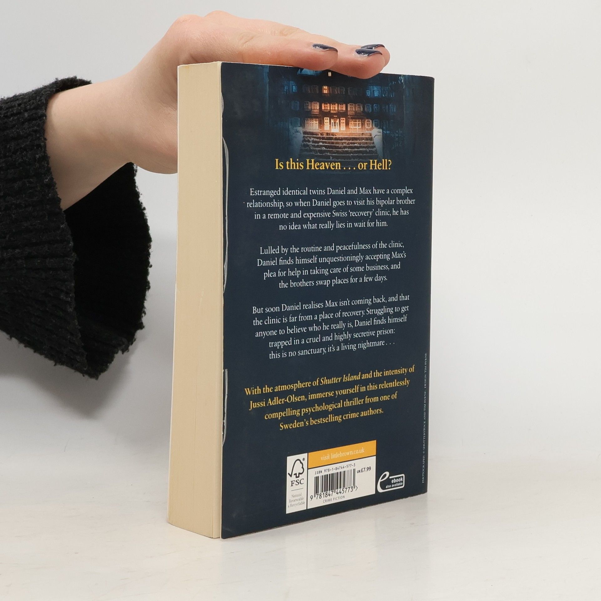 Estranged identical twins Daniel and Max have a complex relationship, so when Daniel goes to visit his bi-polar brother in a remote and expensive Swiss 'recovery' clinic, he has no idea what really lies in wait for him. Lulled by the routine and peacefulness of the clinic, Daniel finds himself unquestioningly accepting Max's plea for help in taking care of some business, and the brothers swap places for a few days. But soon Daniel realises Max isn't coming back, and that the clinic is far from a place of recovery.