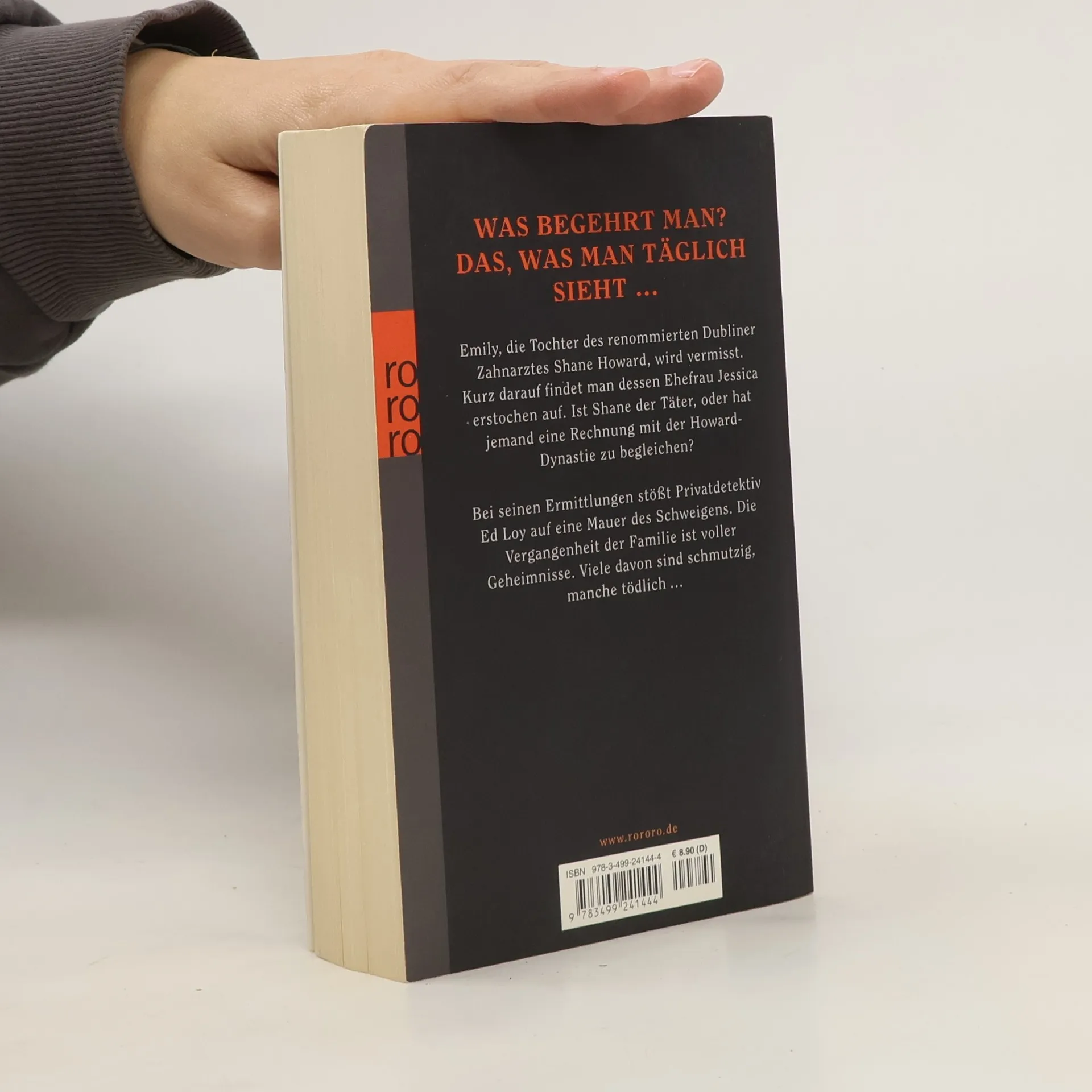 Was begehrt man? Das, was man täglich sieht … Emily, die Tochter des renommierten Dubliner Zahnarztes Shane Howard, wird vermisst. Kurz darauf findet man dessen Ehefrau Jessica erstochen auf. Ist Shane der Täter oder hat jemand eine Rechnung mit der Howard-Dynastie zu begleichen? Bei seinen Ermittlungen stößt Privatdetektiv Ed Loy auf eine Mauer des Schweigens. Die Vergangenheit der Familie ist voller Geheimnisse. Viele davon sind schmutzig, manche tödlich …