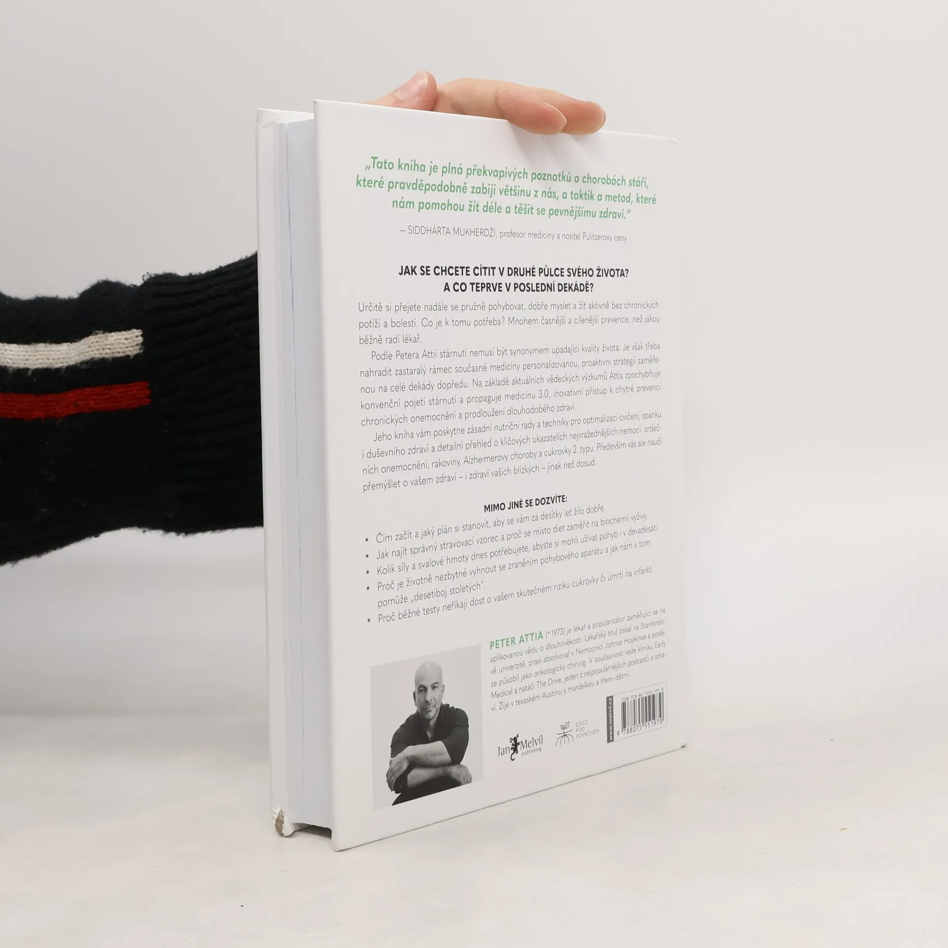 Určitě si přejete nadále se pružně pohybovat, dobře myslet a žít aktivně bez chronických potíží a bolestí. Co je k tomu třeba? Mnohem časnější a cílenější prevence, než jakou běžně radí lékař. Peter Attia věří, že zastaralý rámec současné medicíny musíme nahradit personalizovanou, proaktivní strategií zaměřenou na celé dekády dopředu. Na základě aktuálních vědeckých výzkumů Attia zpochybňuje konvenční pojetí stárnutí a propaguje medicínu 3.0, inovativní přístup k chytré prevenci chronických onemocnění a prodloužení dlouhodobého zdraví. Jeho kniha vám poskytne zásadní nutriční rady a techniky pro optimalizaci cvičení, spánku i duševního zdraví a detailní přehled o klíčových ukazatelích nejvražednějších nemocí: srdečních chorob, rakoviny, Alzheimerovy choroby a cukrovky 2. typu. Především vás ale naučí přemýšlet o vašem zdraví – i zdraví vašich blízkých – jinak než dosud.