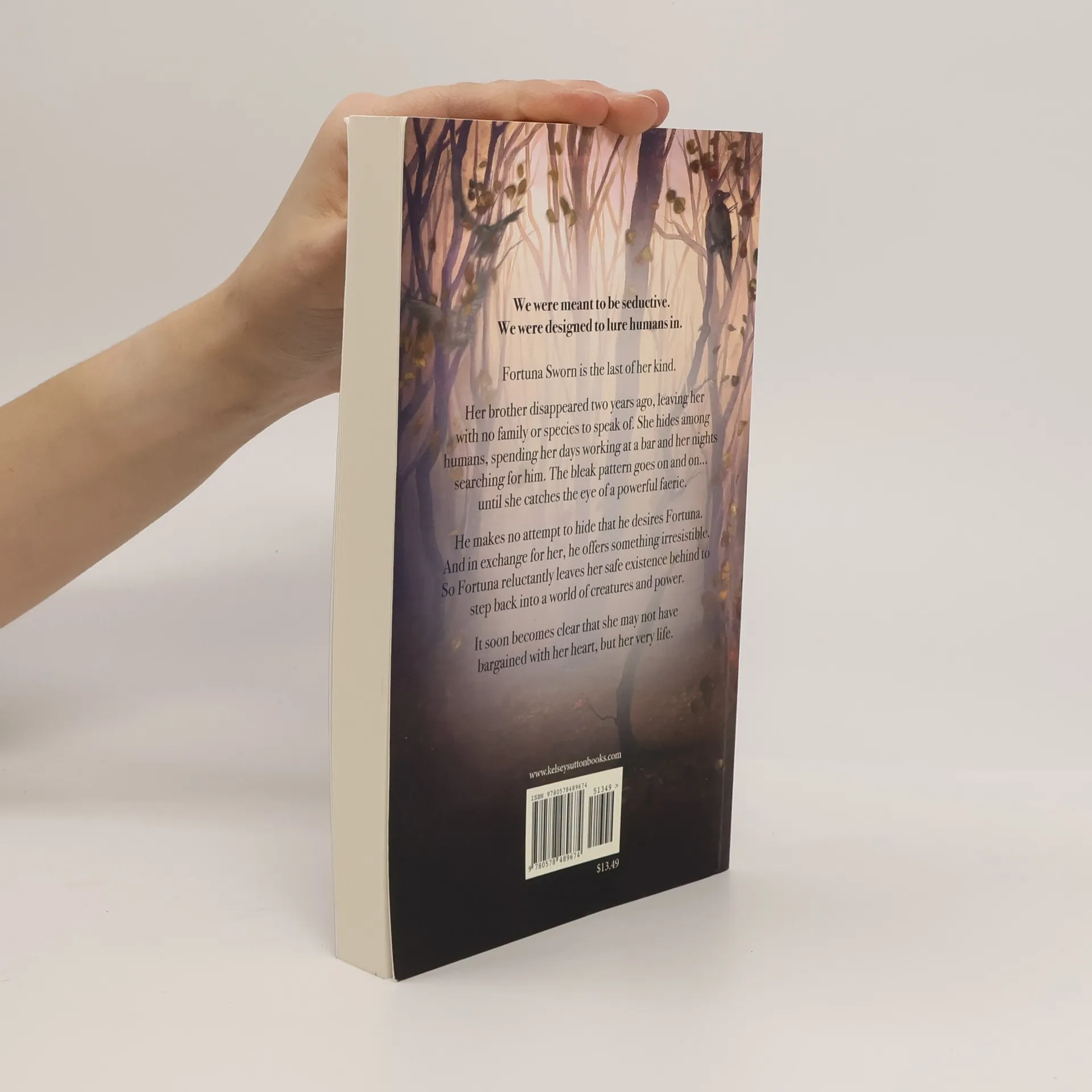 We were meant to be seductive. We were designed to lure humans in. Fortuna Sworn is the last of her kind. Her brother disappeared two years ago, leaving her with no family or species to speak of. She hides among humans, spending her days working at a bar and her nights searching for him. The bleak pattern goes on and on... until she catches the eye of a powerful faerie. He makes no attempt to hide that he desires Fortuna. And in exchange for her, he offers something irresistible. So Fortuna reluctantly leaves her safe existence behind to step back into a world of creatures and power. It soon becomes clear that she may not have bargained with her heart, but her very life.