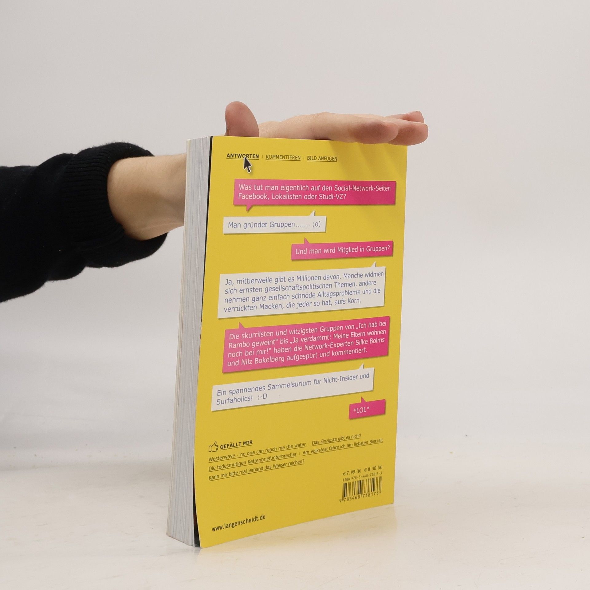 * „Kann mir bitte mal jemand das Wasser reichen?“: Die 140 besten Spaßgruppen aus dem Internet * Zu Themen, die die Internetwelt bewegen: Von Mode über Sprachsünden bis Lebensmottos * Illustriert mit witzigen Fotos * Gesammelt und kommentiert von den Networking-Experten Silke Bolms und Nilz Bokelberg * Für Netzwerk-Fans und Nicht-Insider, die endlich wissen wollen, was auf Facebook & Co. eigentlich vor sicht geht
