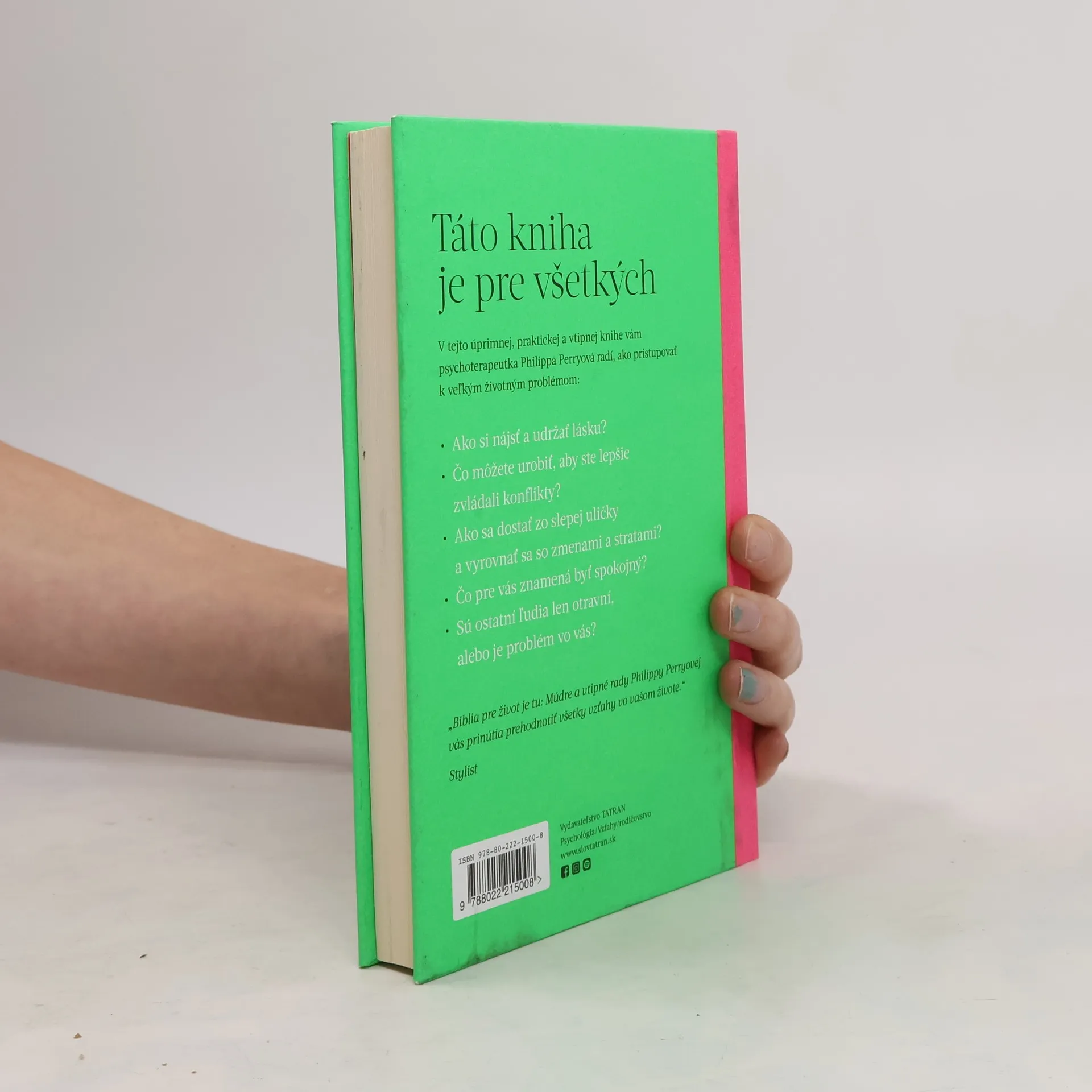 V tejto úprimnej, praktickej a vtipnej knihe vám psychoterapeutka Philippa Perryová radí, ako pristupovať k veľkým životným problémom: Ako si nájsť a udržať lásku? Čo môžete urobiť, aby ste lepšie zvládali konflikty? Ako sa môžete dostať zo slepej uličky a vyrovnať sa so zmenami a stratami. Čo pre vás znamená byť spokojný? Sú ostatní ľudia len otravní, alebo problém je vo vás? Život je predovšetkým o vzťahoch a ich kvalite, či už ide o vzťahy s rodinou, partnermi, priateľmi, kolegami alebo predovšetkým so sebou samým. Ak sa vám podarí dosiahnuť, aby vaše vzťahy správne fungovali a mali patričnú úroveň, potom ľahšie zvládnete aj ostatné zložité veci, ktoré vám život postaví do cesty. So zdravou dávkou rozumu vám súcitné rady autorky môžu pomôcť stať sa šťastnejším a múdrejším človekom.