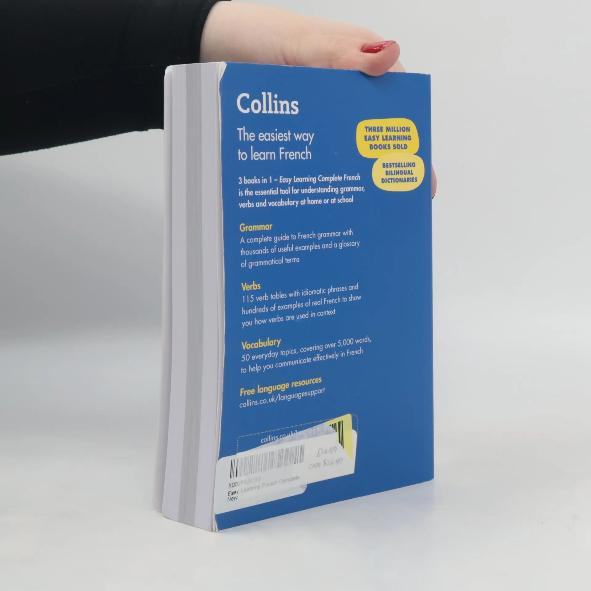 A handy 3-in-1 book: grammar, verbs and vocabulary, ideal for beginners who need a clear and easy-to-understand French reference guide.
