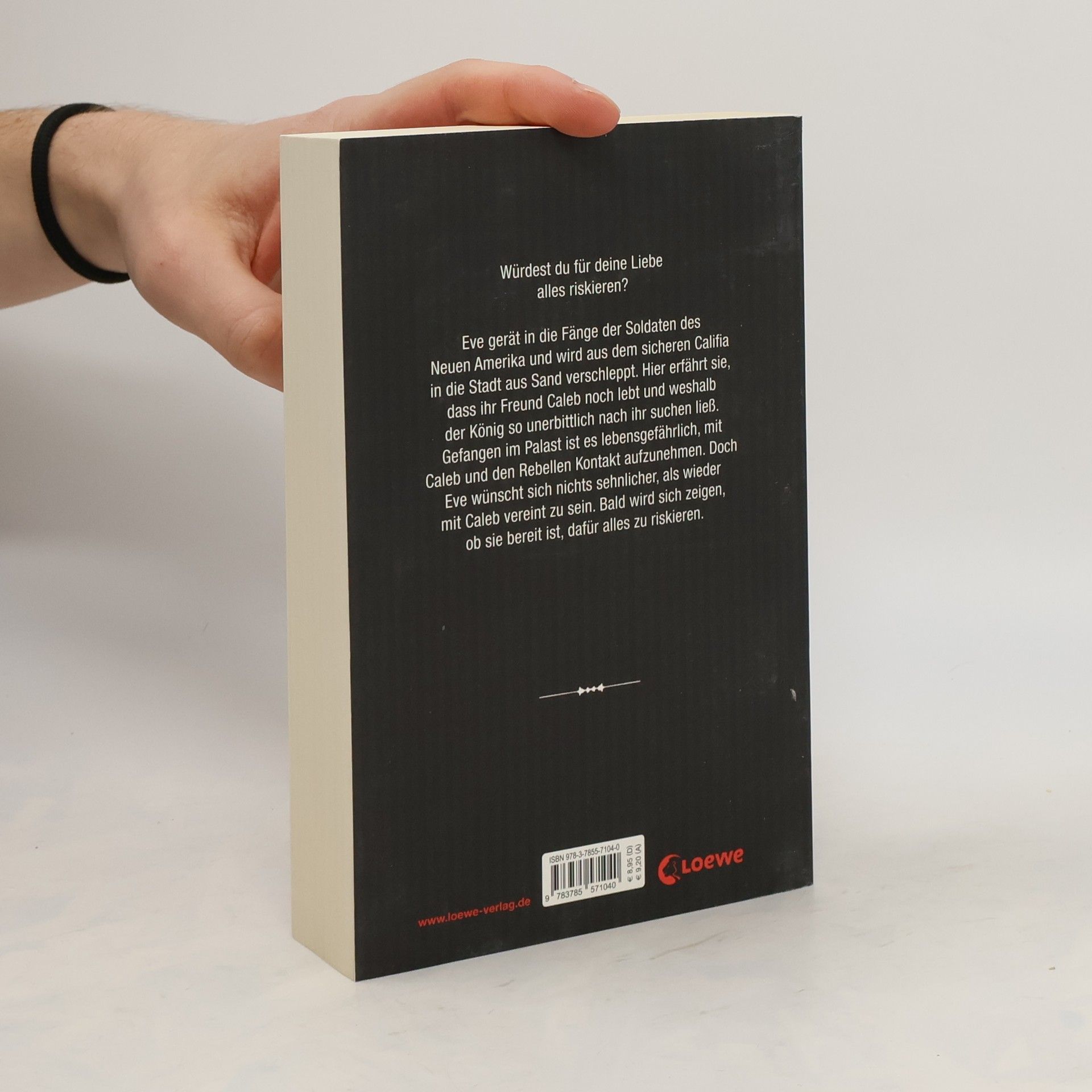 Würdest du für deine Liebe alles riskieren? Eve gerät in die Fänge der Soldaten des Neuen Amerika und wird aus dem sicheren Califia in die Stadt aus Sand verschleppt. Hier erfährt sie, dass ihr Freund Caleb noch lebt, und weshalb der König so unerbittlich nach ihr suchen ließ. Gefangen im Palast ist es lebensgefährlich, mit Caleb und den Rebellen Kontakt aufzunehmen. Doch Eve wünscht sich nichts sehnlicher, als wieder mit Caleb vereint zu sein. Bald wird sich zeigen, ob sie bereit ist, dafür alles zu riskieren. Wahre Freundschaft, Liebe und Freiheit sind es, wonach sich Eve und Caleb sehnen – doch im Neuen Amerika muss man um diese Rechte kämpfen. Anna Carey erschafft in ihrer ersten Jugendbuch-Trilogie eine fesselnde Dystopie für Mädchen ab 14 Jahren, bei der neben der Frage nach Grundrechten wie Freiheit und Selbstbestimmung auch viel Platz für Romantik bleibt.„In der gelobten Stadt„ ist der zweite Band der Eve & Caleb-Trilogie. Der Titel des ersten Bandes lautet „Wo Licht war“.