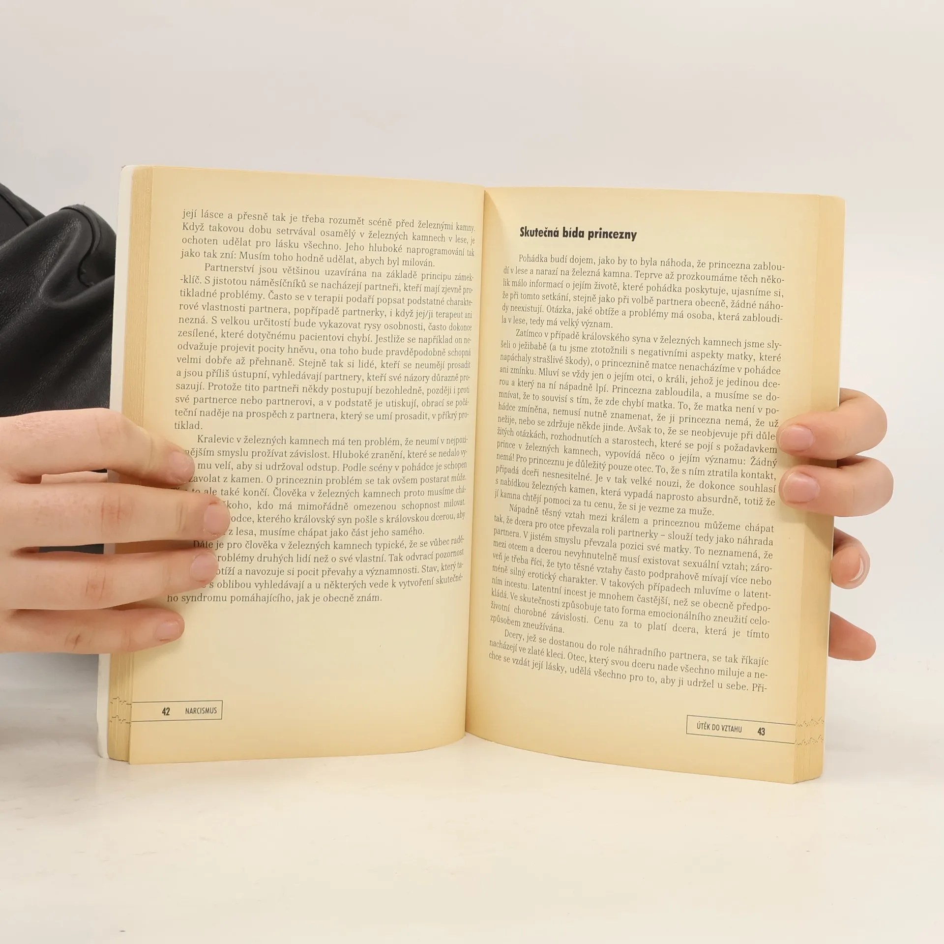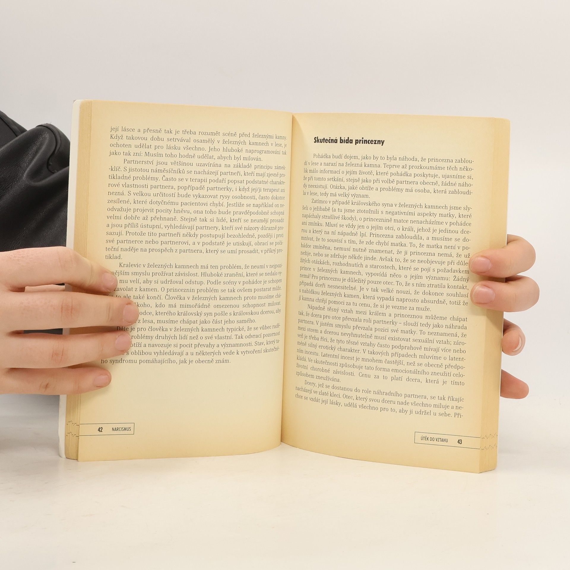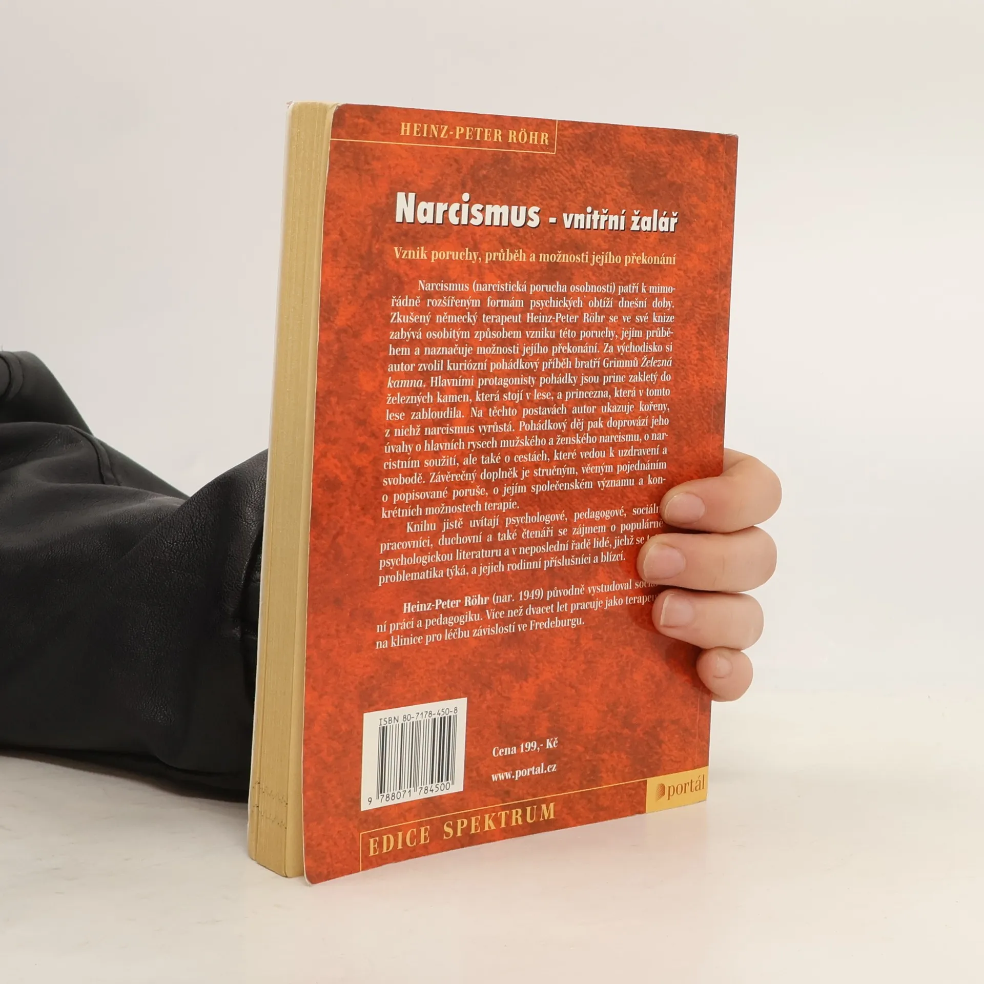 Vznik poruchy, průběh a možnosti jejího překonání. Narcismus (narcistická porucha osobnosti) patří k mimořádně rozšířeným formám psychických obtíží dnešní doby. Zkušený německý terapeut Heinz-Peter Röhr se ve své knize zabývá osobitým způsobem vzniku této poruchy, jejím průběhem a naznačuje možnosti jejího překonání. Za východisko si autor zvolil kuriózní pohádkový příběh bratří Grimmů „Železná kamna“. Hlavními protagonisty pohádky jsou princ zakletý do železných kamen, která stojí v lese a princezna, která v tom lese zabloudila. Na těchto postavách autor ukazuje kořeny, z nichž narcismus vyrůstá. Pohádkový děj pak doprovází jeho úvahy o hlavních rysech mužského a ženského narcismu, o narcistním soužití, ale také o cestách, které vedou k uzdravení a svobodě. Závěrečný doplněk je stručným, věcným pojednáním o popisované poruše, o jejím společenském významu a konkrétních možnostech terapie.
