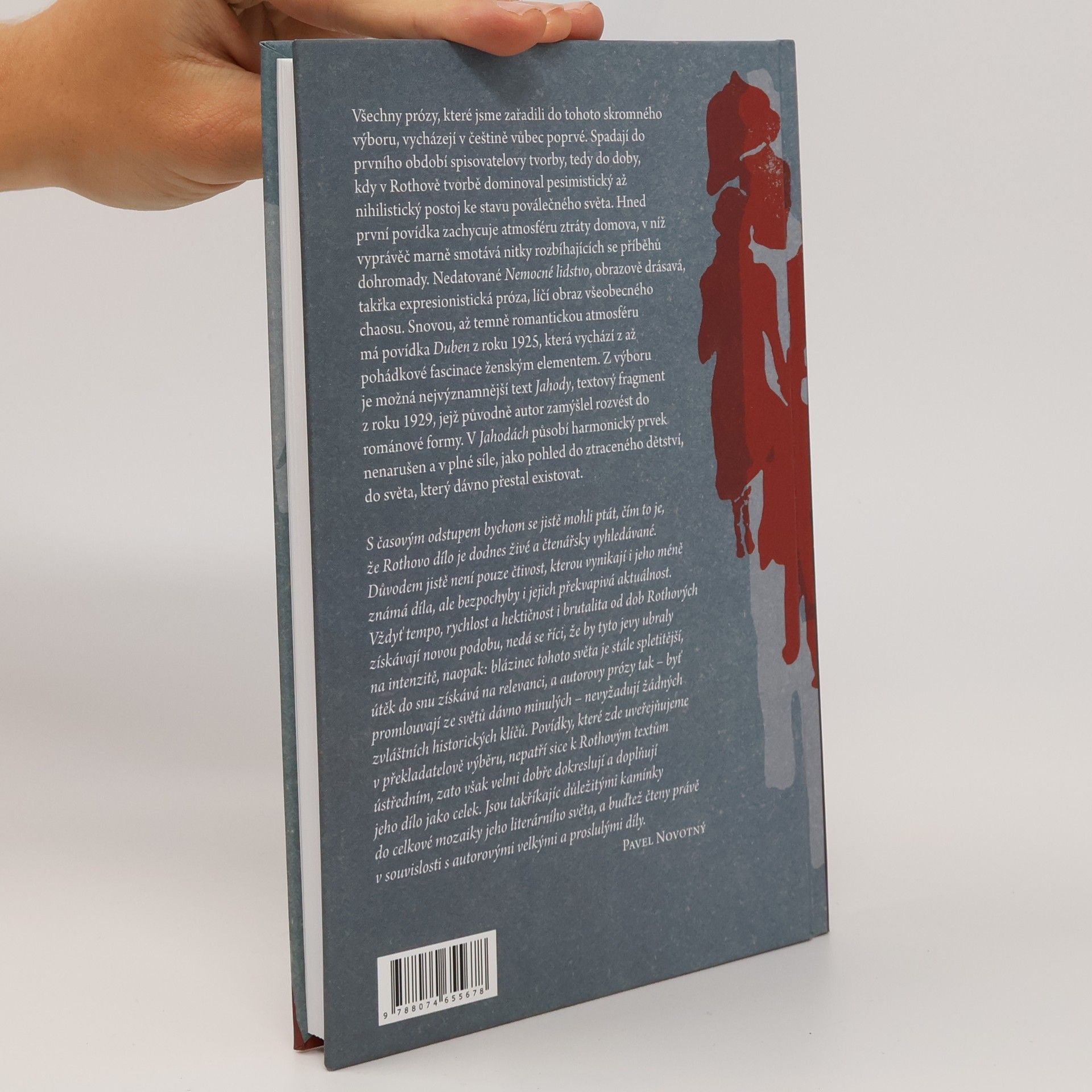 Všechny prózy zařazené do tohoto výboru vycházejí v češtině poprvé a spadají do prvního období spisovatelovy tvorby, kdy dominoval pesimistický postoj k poválečnému světu. První povídka zachycuje atmosféru ztráty domova, v níž vyprávěč marně smotává nitky rozbíhajících se příběhů. Nemocné lidstvo, obrazově drásavá próza, líčí chaos a zmatek doby. Povídka Duben z roku 1925 má snovou, temně romantickou atmosféru, vycházející z fascinace ženským elementem. Text Jahody z roku 1929, původně zamýšlený jako román, představuje harmonický prvek nenarušený, jako pohled do ztraceného dětství. Rothovo dílo zůstává živé a čtenářsky vyhledávané nejen díky čtivosti, ale také překvapivé aktuálnosti. Tempo a brutalita doby, které se od Rothových časů proměnily, neztratily na intenzitě. Blázinec světa se stále komplikuje, a útěk do snu se stává relevantním. Autorovy prózy, ačkoliv pocházejí z minulosti, nevyžadují žádné zvláštní historické klíče. Povídky v tomto výboru sice nepatří k Rothovým ústředním textům, ale velmi dobře doplňují jeho dílo jako celek a tvoří důležité kamínky do mozaiky jeho literárního světa. Měly by být čteny v souvislosti s jeho velkými a proslulými díly.