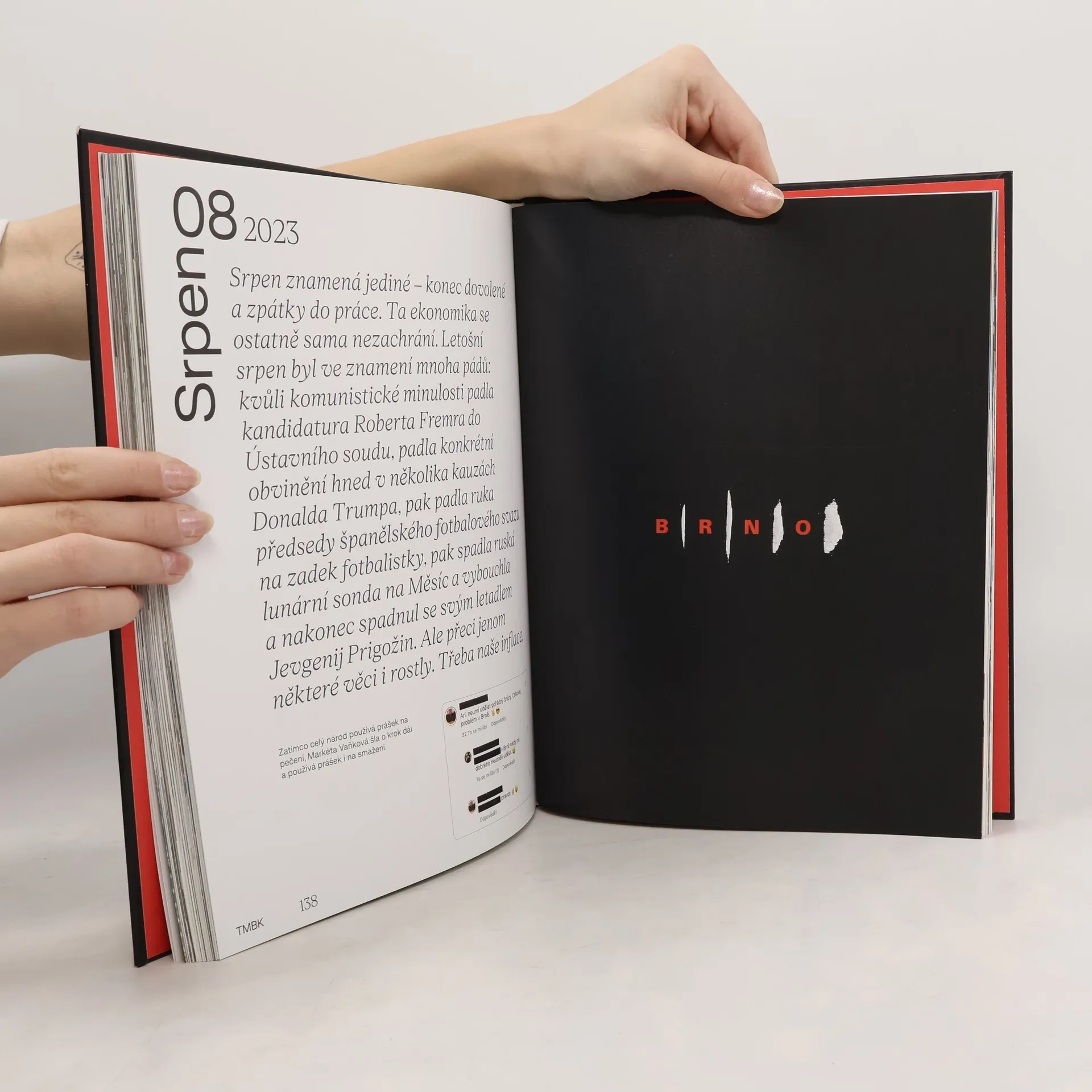 Ročenka všeho podstatného a pravdivého, co přinesl letopočet 2023. Historické události, privátní milníky i chvíle, které roztáčely spirálu osudu (nejen) české společnosti. To nejlepší z tvorby TMBK za uplynulý rok a to nejlepší i nejhorší, co lidstvo nabídlo. Výtěžek z knihy bude stejně jako v loňském roce použit na právníky a nově i na psychoterapeuty.