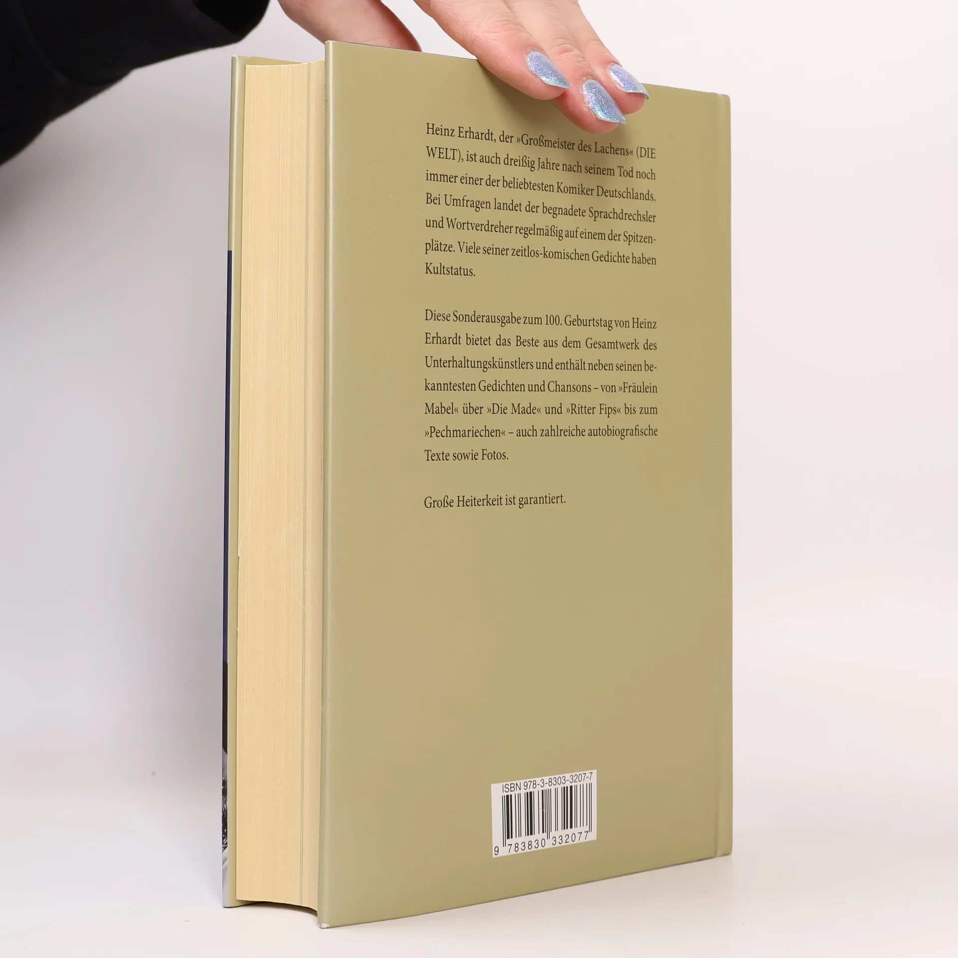 Diese Sonderausgabe zum 100. Geburtstag von Heinz Erhardt enthält das Beste aus seinem Gesamtwerk. Neben seinen bekanntesten Gedichten und Chansons (von „Fräulein Mabel“, „Die Made“ über „Ritter Fips“ bis hin zum „Pechmariechen“") finden Fans in diesem Band auch zahlreiche Fotos des Unterhaltungskünstlers.
