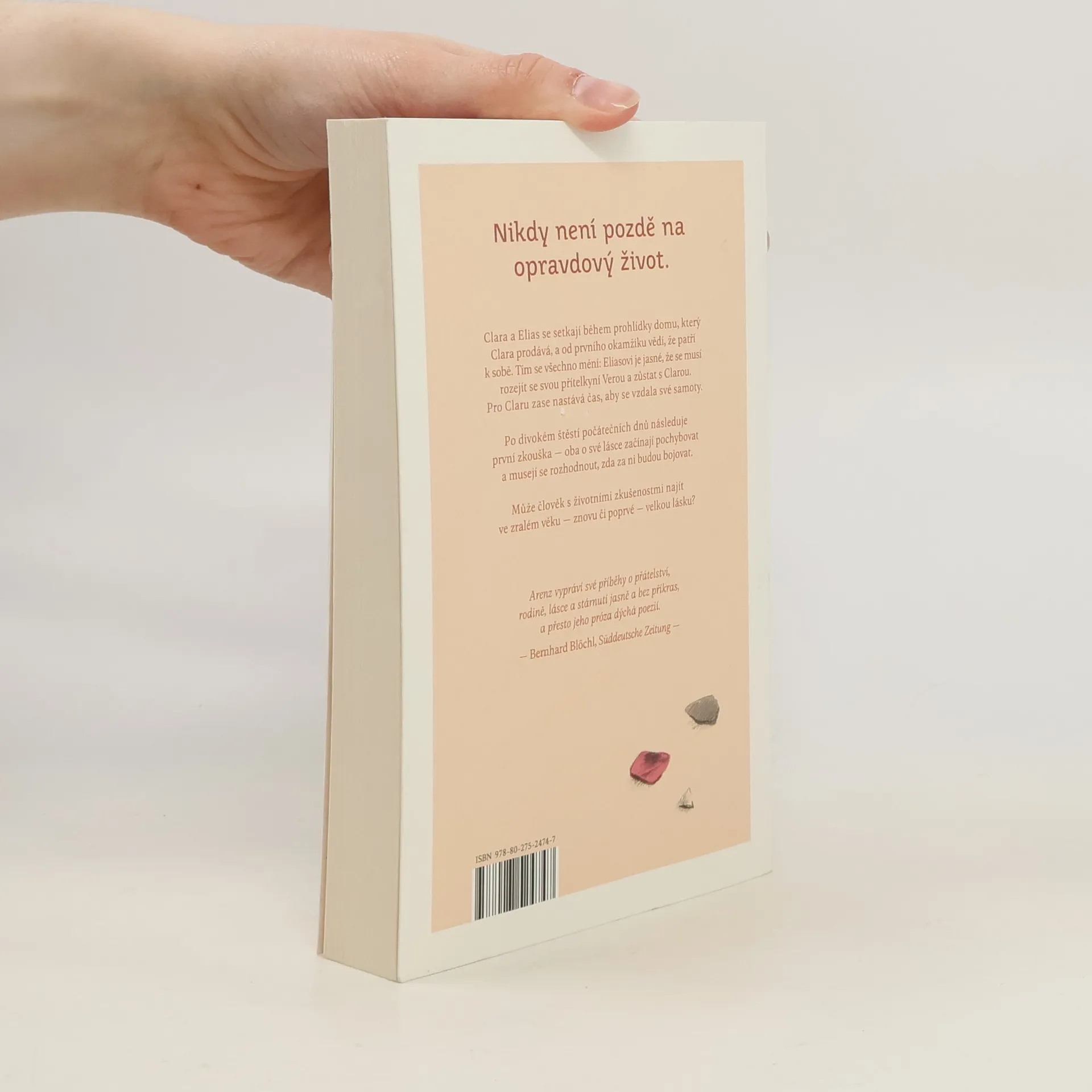 Je možné znovunalézt velkou lásku, když už člověk není nejmladší a zároveň je zatížen životními zkušenostmi? Román německého autora. Clara a Elias se setkají během prohlídky domu, který Clara prodává, a od prvního okamžiku vědí, že patří k sobě. Tím se všechno mění: Eliasovi je jasné, že se musí rozejít se svou přítelkyní Verou a zůstat s Clarou. I pro Claru nastává čas, aby se vzdala své samoty. Po divokém štěstí počátečních dnů následuje první zkouška, oba o své lásce začínají pochybovat a musejí se rozhodnout, zda za ni budou bojovat. Může člověk s životními zkušenostmi najít ve zralém věku znovu či poprvé velkou lásku? Nakladatelská anotace.
