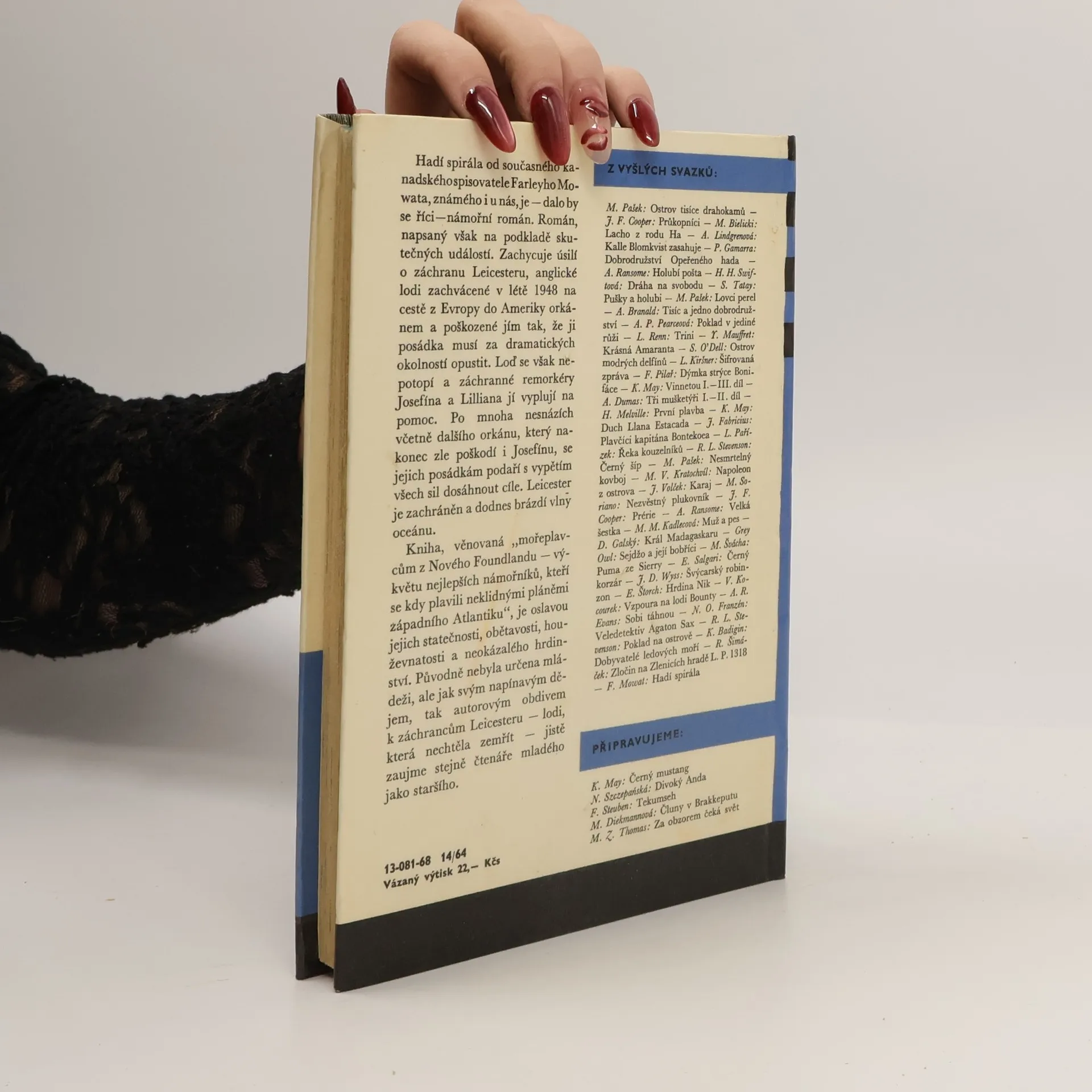 O této knize by se dalo říci, že se jedná o námořní román. Publikace byla napsána na podkladě skutečných událostí. Zachycuje úsilí o záchranu anglické lodi Leicesteru, která v létě roku 1948 plula z Evropy do Ameriky. Byla poškozena orkánem Hadí spirála natolik, že ji posádka v čele skapitánem Lawsonem musela za dramatických okolností opustit.