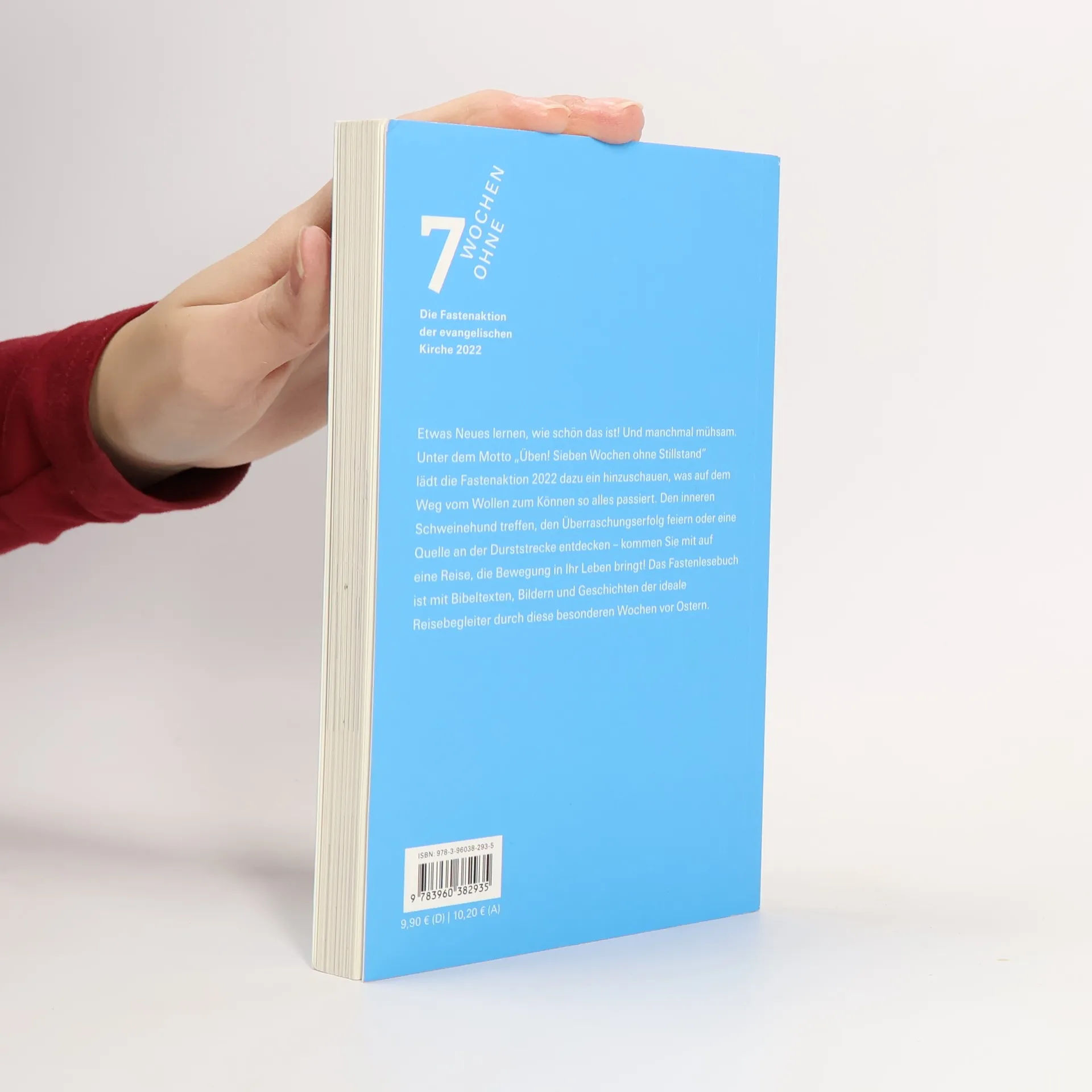 7 Wochen ohne Stillstand – der motivierende Begleiter durch die Fastenzeit Egal, wie klein oder groß unser Ziel ist, ob wir eine schlechte Gewohnheit aufgeben möchten, bewusst auf etwas verzichten wollen oder eine Veränderung im Leben anstreben: Übung macht den Meister und die Meisterin! Manchmal klappt nicht alles sofort, doch es ist gut, sich auf den Weg zu machen. Deswegen: Lasst uns gemeinsam üben! Dazu lädt die Fastenaktion der Evangelischen Kirche ein. Mit dem persönlichen Begleitbuch wird die Zeit von Aschermittwoch bis Ostern für Sie zu einer Entdeckungsreise: Was ist möglich, wenn ich mich auf den Weg mache und Tag für Tag ein wenig übe? - Lesebuch zur Fastenzeit 2022: Denkanstöße und Weisheitsgeschichten - Einladung zur Selbstreflexion: Erzählungen und Bibeltexte - Loslegen, durchhalten, Ziele erreichen: Übungen und Coaching-Tipps - So sehe ich das: Raum für eigene Notizen und Gedanken - Üben! Sieben Wochen ohne Stillstand – das Begleitbuch zur Fastenaktion 2022 Das Fastenlesebuch: Inspiration für jeden Tag Die Wochen vor Ostern sind seit jeher eine Zeit der inneren Einkehr. „7 Wochen Ohne“, die Fastenaktion der Evangelischen Kirche, lädt seit mehr als 30 Jahren ein zum Fasten im Kopf. Was brauche ich wirklich im Leben, worauf kann ich auch mal verzichten? Jetzt ist die richtige Zeit, etwas Neues auszuprobieren und Klarheit zu gewinnen – lassen Sie sich von Geschichten aus dem Leben und Bibelstellen durch Ihre Fastenzeit begleiten!