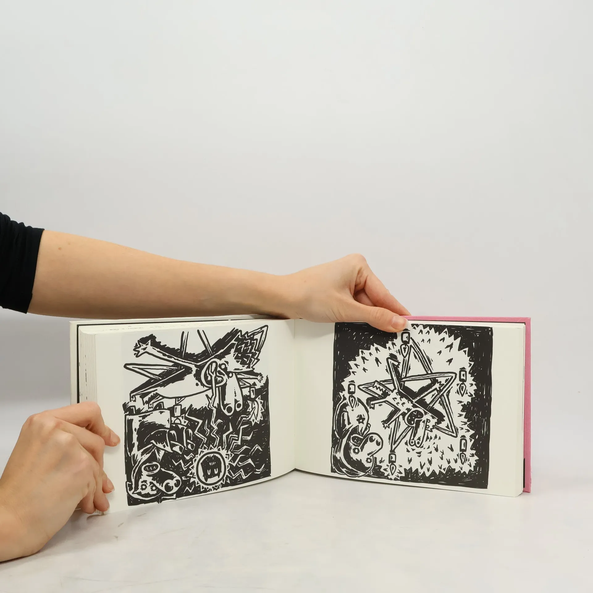 Růžové něco, Piňďa a Tři čuníci jsou obrázkové příběhy v jedné knížce. V půlce knížku otočte, čtěte z druhé strany, a možná vám to pak bude dávat smysl. Růžové něco vzniklo více méně během suchého února 2020.