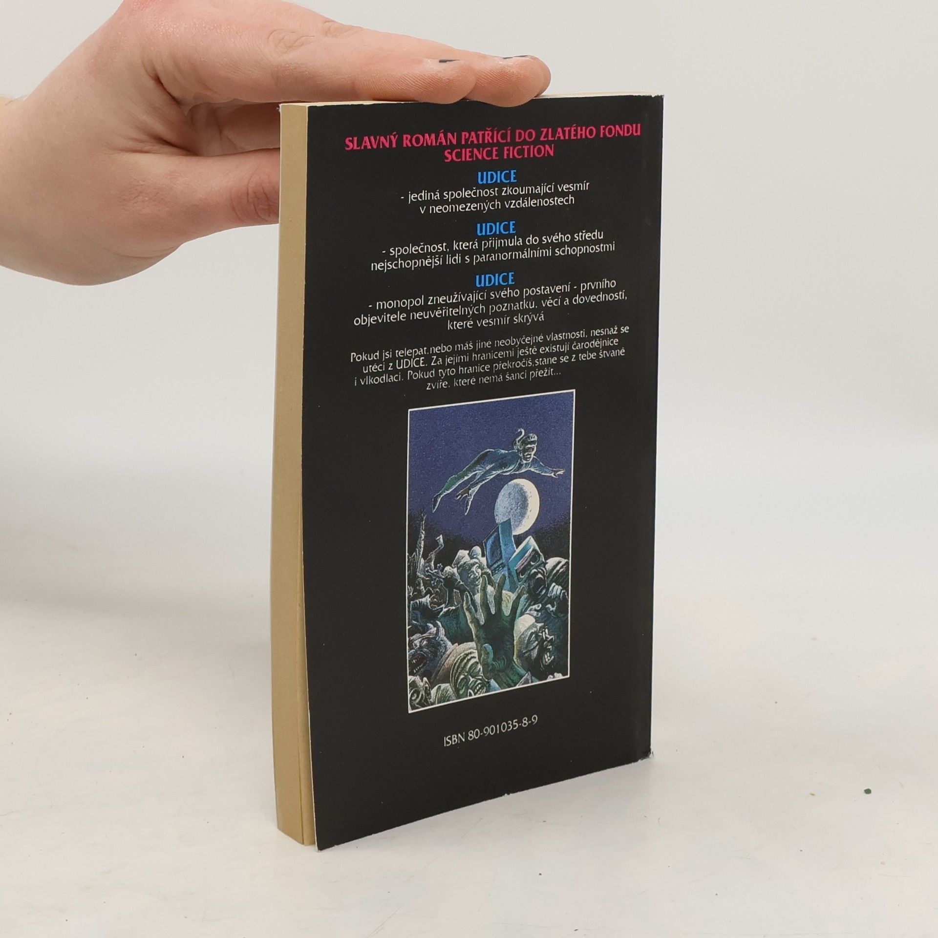 Udice – jediná společnost zkoumající vesmír v neomezených vzdálenostech. Udice – společnost, která přijmula do svého středu nejschopnější lidi s paranormálními schopnostmi. Udice – monopol zneužívající svého postavení – prvního objevitele neuvěřitelných poznatků, věcí a dovedností, které vesmír skrývá. Pokud jsi telepat, nebo máš jiné neobyčejné vlastnosti, nesnaž se utéci z Udice. Za jejími hranicemi ještě existují čarodějnice i vlkodlaci. Pokud tyto hranice překročíš, stane se z tebe štvané zvíře, které nemá šanci přežít… -- zdroj: www.legie.info --