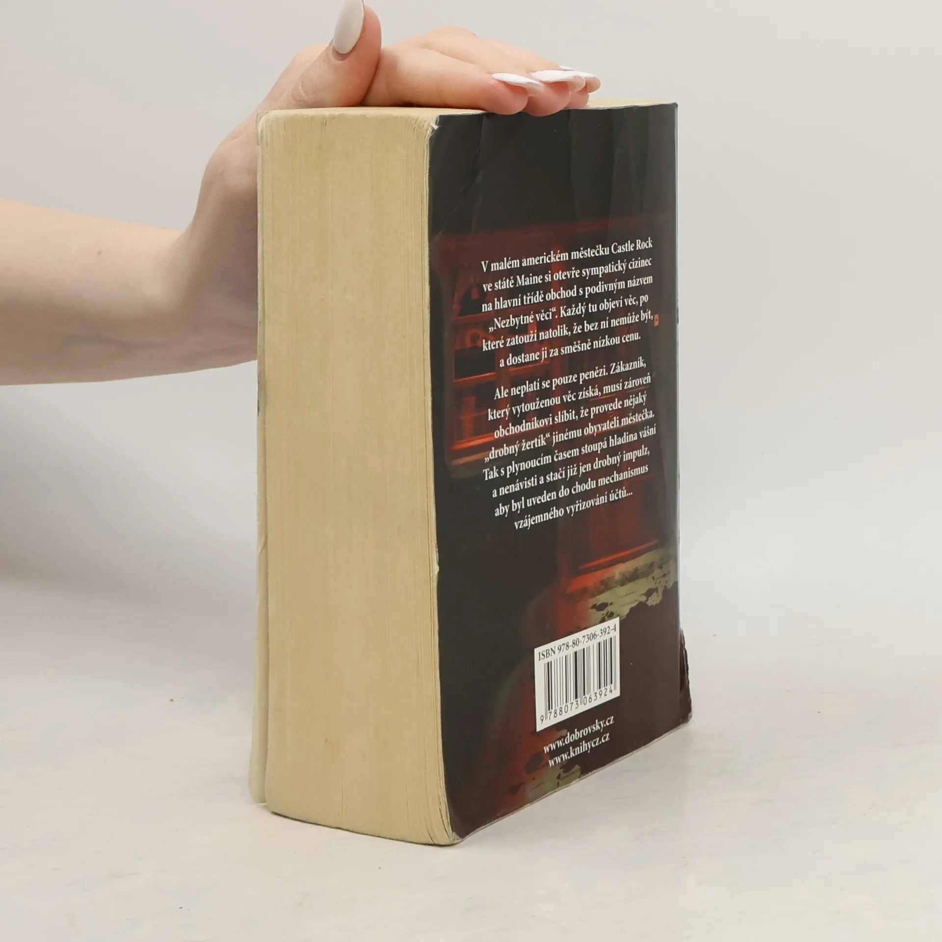 V malém americkém městečku Castle Rock ve státe Maine si otevře sympatický cizinec na hlavní třídě obchod s podivným názvem „Nezbytné věci“. Každý tu objeví věc, po které zatouží natolik, že bez ní nemůže být, a dostane ji za směšně nízkou cenu. Ale neplatí se pouze penězi. Zákazník, který vytouženou věc získá, musí zároveň obchodníkovi slíbit, že provede nějaký „drobný žertík“ jinému obyvateli městečka. Tak s plynoucím časem stoupá hladina vášní a nenávisti a stačí již jen drobný impulz, aby byl uveden do chodu mechanismus vzájemného vyřizování účtů... Dotisk roku 2014.