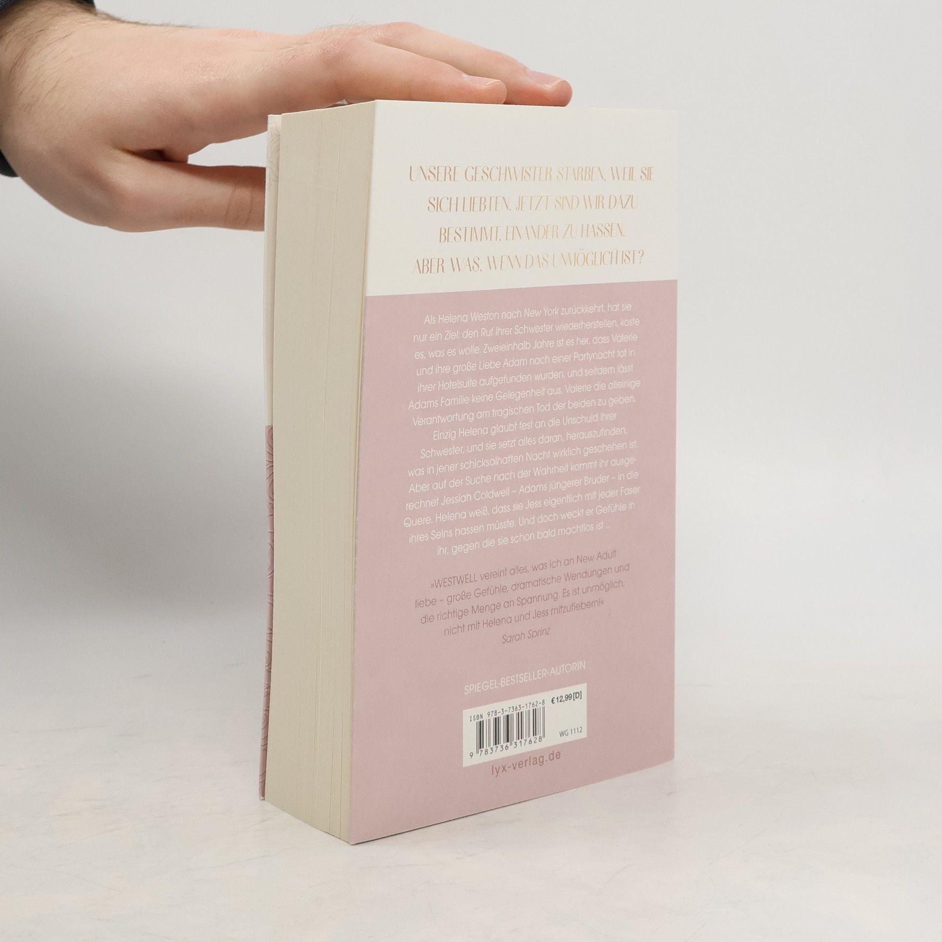 Unsere Geschwister starben, weil sie sich liebten. Jetzt sind wir dazu bestimmt, einander zu hassen. Doch was, wenn das unmöglich ist? Helena Weston kehrt nach New York zurück, um den Ruf ihrer Schwester Valerie wiederherzustellen. Zweieinhalb Jahre nach dem tragischen Tod von Valerie und ihrer großen Liebe Adam, der sie nach einer Partynacht in ihrer Hotelsuite tot aufgefunden wurde, wird Valerie von Adams Familie für den Vorfall verantwortlich gemacht. Nur Helena glaubt an die Unschuld ihrer Schwester und setzt alles daran, die Wahrheit über die schicksalhafte Nacht herauszufinden. Dabei stößt sie auf Jessiah Coldwell, Adams jüngeren Bruder. Obwohl Helena ihn hassen sollte, weckt Jess Gefühle in ihr, gegen die sie machtlos wird. „WESTWELL vereint alles, was ich an New Adult liebe - große Gefühle, dramatische Wendungen und die richtige Menge an Spannung. Es ist unmöglich, nicht mit Helena und Jess mitzufiebern!“ - SARAH SPRINZ Band 1 der WESTWELL-Reihe von SPIEGEL-Bestseller-Autorin Lena Kiefer.