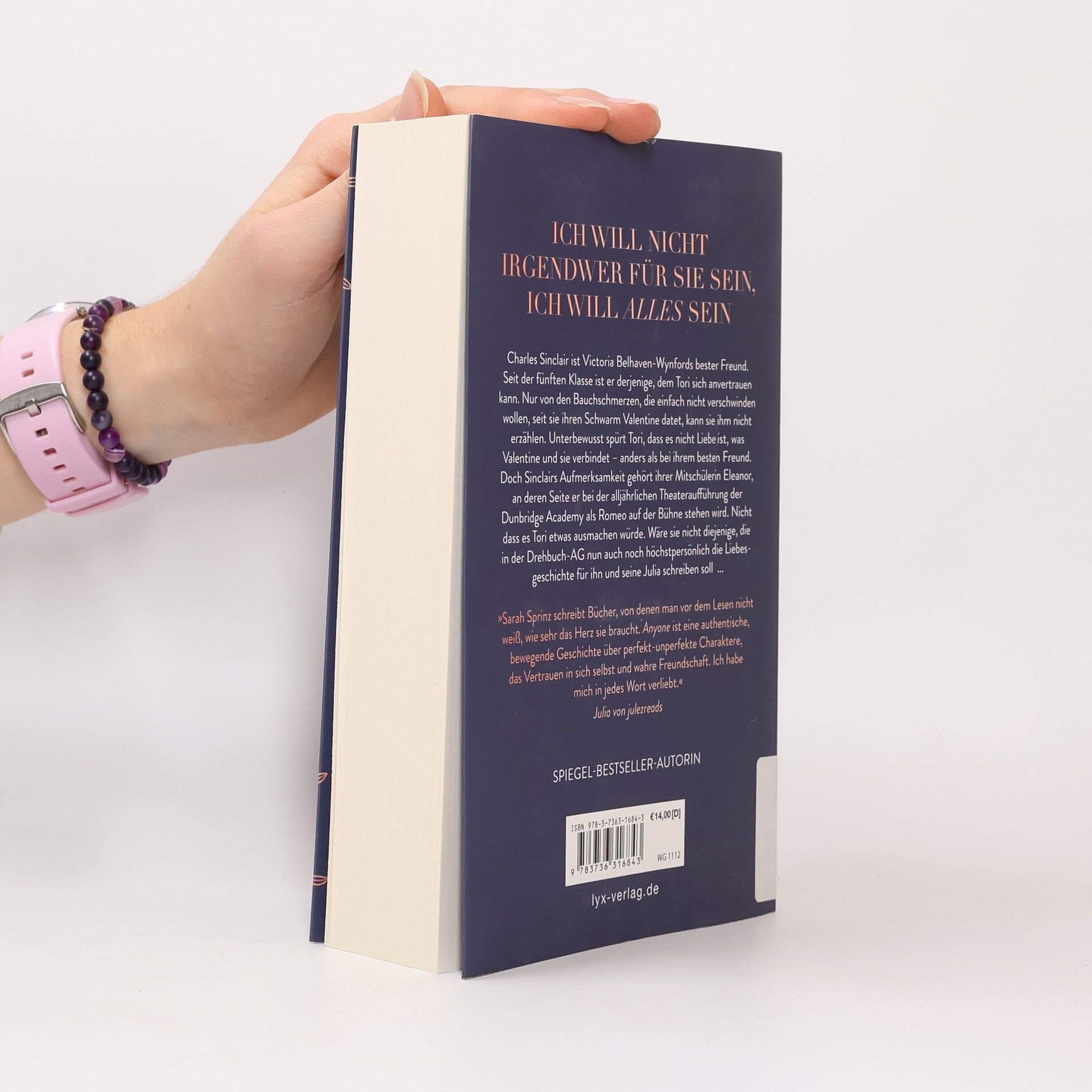 Ich will nicht Irgendwer für sie sein, ich will alles sein Charles Sinclair ist Victoria Belhaven-Wynfords bester Freund. Seit der fünften Klasse ist er derjenige, dem Tori sich anvertrauen kann. Nur von den Bauchschmerzen, die einfach nicht verschwinden wollen, seit sie ihren Schwarm Valentine datet, kann sie ihm nicht erzählen. Unterbewusst spürt Tori, dass es nicht Liebe ist, was Valentine und sie verbindet - anders als bei ihrem besten Freund. Doch Sinclairs Aufmerksamkeit gehört ihrer Mitschülerin Eleanor, an deren Seite er bei der alljährlichen Theateraufführung der Dunbridge Academy als Romeo auf der Bühne stehen wird. Nicht dass es Tori etwas ausmachen würde. Wäre sie nicht diejenige, die in der Drehbuch-AG nun auch noch höchstpersönlich die Liebesgeschichte für ihn und seine Julia schreiben soll ... Band 2 der DUNBRIDGE-ACADEMY-Reihe von SPIEGEL-Bestseller-Autorin Sarah Sprinz