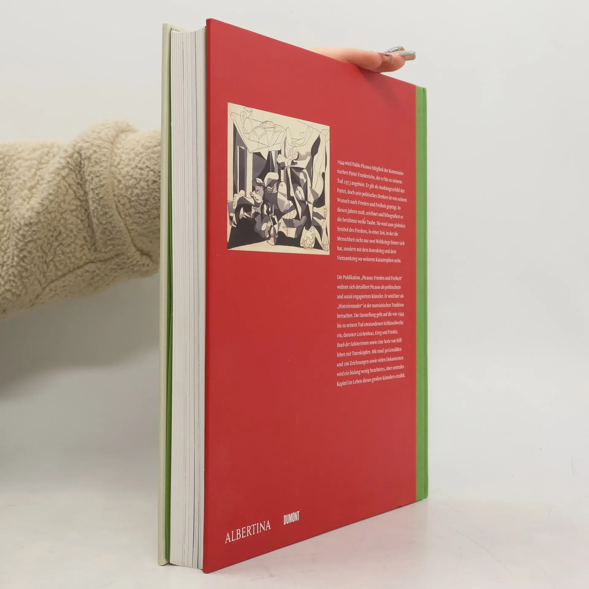 1944 tritt Pablo Picasso der kommunistischen Partei Frankreichs bei und bleibt ihr bis zu seinem Tod verbunden. Obwohl er als Aushängeschild der Partei gilt, ist sein politisches Denken stark von seinem Streben nach Frieden und Freiheit geprägt. In dieser Zeit entstehen seine berühmten Darstellungen der weißen Taube, die zum globalen Friedenssymbol wird, während die Welt mit den Nachwirkungen zweier Weltkriege und bevorstehenden Konflikten wie dem Korea- und Vietnamkrieg konfrontiert ist. Diese Publikation untersucht Picasso als politisch und sozial engagierten Künstler und betrachtet ihn nicht als isolierten Giganten der modernen Kunst, sondern als „Historienmaler“ in der marxistischen Tradition. Sie beleuchtet seine Schlüsselwerke von 1944 bis zu seinem Tod, darunter „Leichenhaus“, „Krieg und Frieden“ und „Raub der Sabinerinnen“, sowie eine Serie von Stillleben mit Totenköpfen. Rund 50 Gemälde, 100 Zeichnungen und zahlreiche Dokumente erzählen ein bisher vernachlässigtes, aber zentrales Kapitel in Picassos Leben. Ergänzt wird die Darstellung durch Briefauszüge und Schriften, die neue Einblicke in sein politisches Engagement bieten. Die Ausstellung „PICASSO. FRIEDEN UND FREIHEIT“ fand in der Albertina in Wien vom 22. September 2010 bis 16. Januar 2011 statt.