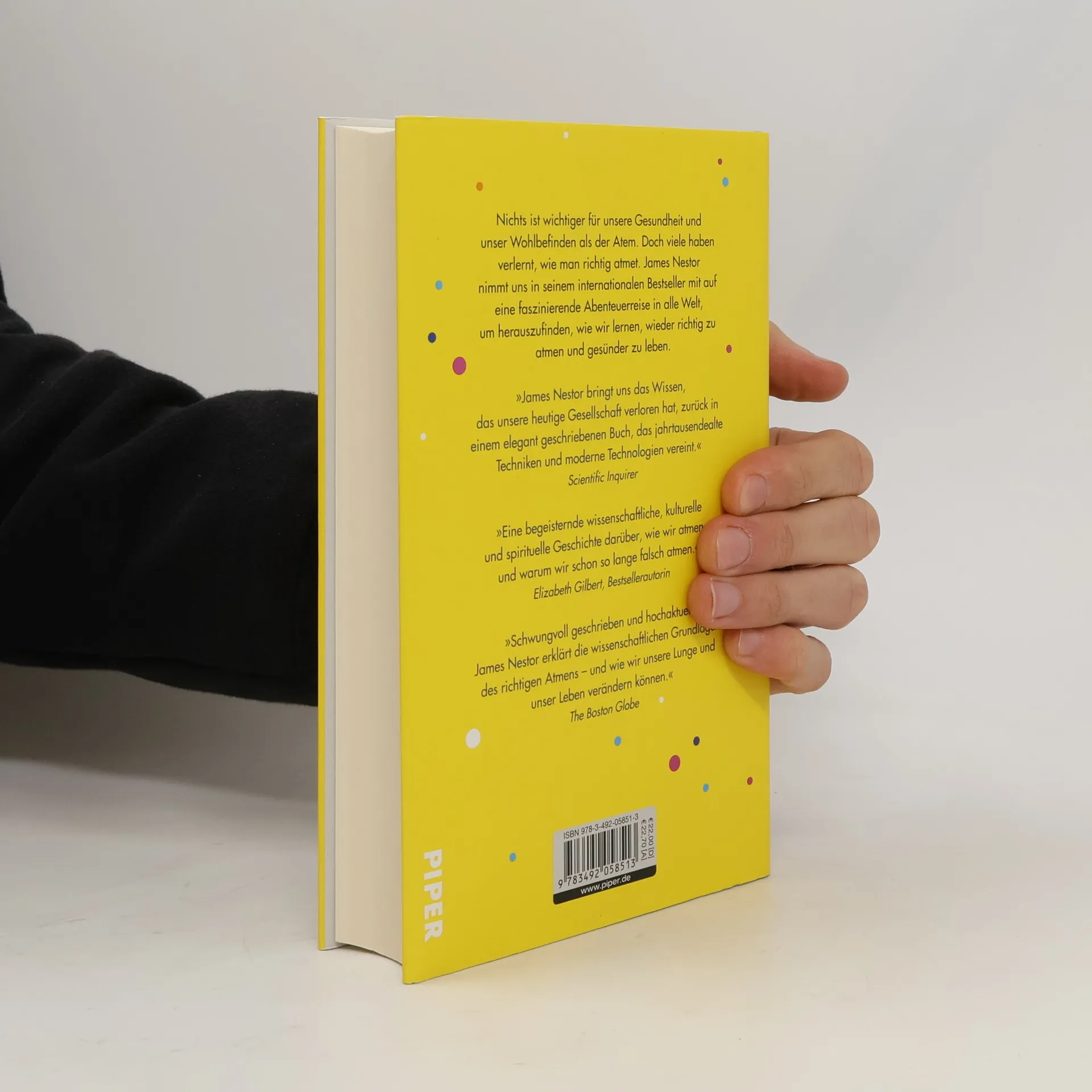 Atmen heißt Leben - James Nestor bringt uns die verlorene Kunst des guten Atmens näher. Die Atmung ist die einzige Körperfunktion, die wir wirklich kontrollieren können, bei der jedoch oft Fehler passieren. Richtiges Atmen kann helfen, Gewicht zu verlieren, die Gesundheit zu verbessern und sogar das Leben zu verlängern. Wer gut atmet, ist selbstbewusster und fokussierter. Nestors Leben war einst chaotisch: gesundheitliche Probleme, Stress und eine dritte Lungenentzündung prägten seinen Alltag. Dies änderte sich, als er einen Kurs für Sudarshan-Kriya-Atmung besuchte. Bis zu diesem Zeitpunkt hatte er sich wenig mit diesem lebenswichtigen Akt beschäftigt. Nach der ersten Sitzung fühlte er sich jedoch deutlich besser und schlief besser als je zuvor, indem er sich auf langsame Atemzüge durch die Nase konzentrierte. Nach zehn Jahren akribischer Forschung, Experteninterviews und dem Testen verschiedener Atemtechniken zeigt Nestor, was Atmung in unserem Körper bewirken kann. Er kombiniert Wissen von Schwimmtrainern, indischen Mystikern und russischen Kardiologen, um die vielfältigen Auswirkungen der Atmung zu verdeutlichen. Diese aufschlussreiche Odyssee durch die faszinierende Welt des Atmens ist nicht nur informativ, sondern auch ein Selbstversuch, der das Buch besonders überzeugend macht. „Rund 10.000 Atemzüge braucht es, sein Buch durchzulesen“, sagt Nestor. Die Mühe lohnt sich – nicht nur wegen der erstaunlichen Fakten, sonde