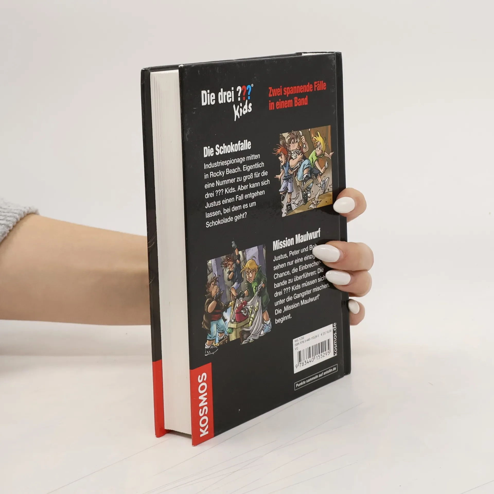Industriespionage und eine Einbrecherbande in Rocky Beach – zwei ultraspannende Fälle für die drei ??? Kids in einem Band Doppelband. Die Schokofalle: Industriespionage mitten in Rocky Beach. Eigentlich eine Nummer zu groß für die drei ??? Kids. Aber kann sich Justus einen Fall entgehen lassen, bei dem es um Schokolade geht? Mission Maulwurf: Justus, Peter und Bob sehen nur eine Chance eine Einbrecherbande zu überführen: Die drei ??? müssen sich unter die Gangster mischen. Die ‚Mission Maulwurf‘ beginnt.