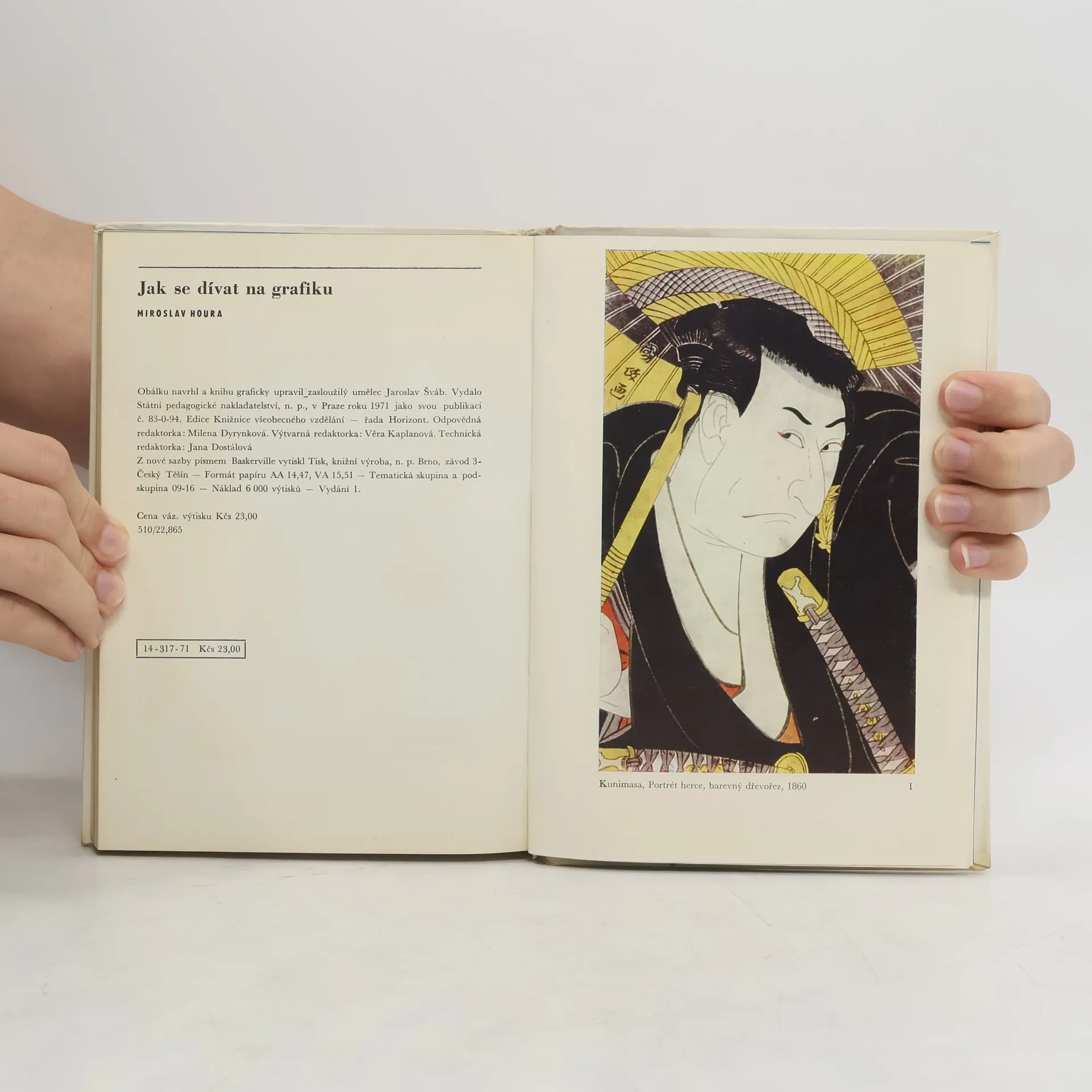 Hourova knížka o grafice je jakýmsi autorovým dialogem s mladým čtenářem nad jednotlivými grafickými listy. Text je členěn na oddíly podle grafických technik; autorovi však nejde jen o technické postupy ani o historii. Hlavním smyslem jeho výkladu je poznání grafiky jako uměleckého díla. Autor ukazuje různé výrazové možnosti jednotlivých technik, vysvětluje, jak umělec volil právě tu, která nejlépe tlumočí jeho výtvarný názor, myšlenku. Zastoupeni jsou tu umělci nejrůznějších dob a výtvarných názorů a směrů, naši i zahraniční. Poslední kapitola informuje o praktickém využití grafiky v tvorbě plakátů, známek, v knižní úpravě atd. Kniha je bohatě dokumentována reprodukcemi grafických děl.