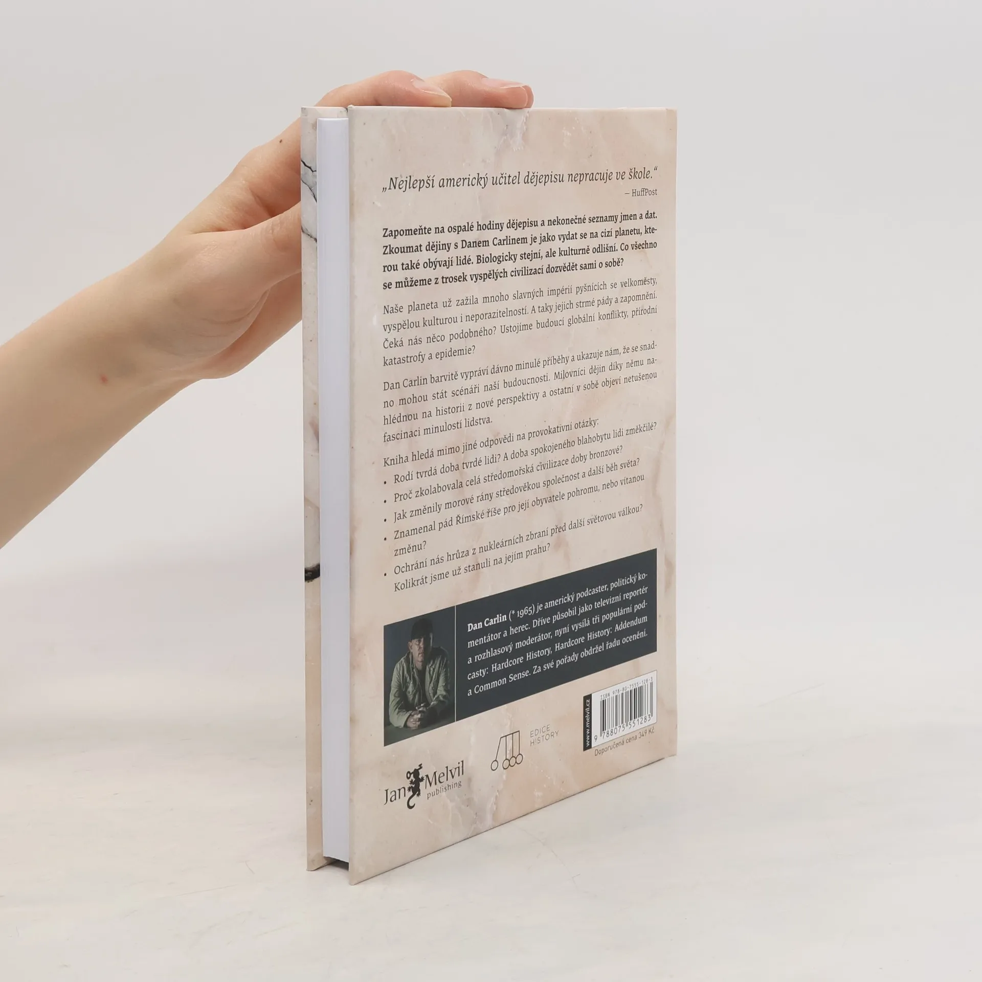 Jaké příběhy prožívají lidé, zatímco jejich civilizace kolabuje? Rodí tvrdá doba tvrdé lidi? Má způsob výchovy dětí vliv na společnost jako celek? Dokážeme nakládat s moderními zbraněmi, aniž bychom zničili sami sebe? Je pokrok nezadržitelný, anebo můžeme o naše současné schopnosti, poznání a technologie přijít? Hardcore historie není obyčejná historická kniha. Dan Carlin, tvůrce stejnojmenného úspěšného podcastu, kombinuje vyprávění příběhů s podivuhodnými událostmi a spojuje tak minulost a budoucnost překvapivými způsoby. Rozhodně nečekejte suchopárný seznam jmen, dat a událostí. Naopak uvidíte, že velké příběhy prožívali lidé z masa a kostí, v mnoha ohledech stejní jako my. Zpochybňuje pojmy jako pokrok, úpadek, vzestup či pád, kterými jsme si dřívější doby onálepkovali, a připomíná, že od zhroucení doby bronzové až po výzvy jaderné éry, každou apokalypsu spojuje nejdůležitější představitelný problém: přežití člověka. Milovníci dějin uvidí minulost z jiné perspektivy a ti, kdo hodiny dějepisu ve škole protrpěli, v sobě díky Carlinovi objeví netušené sympatie k tomuto oboru. Příběhy Hardcore historie jsou živými dějinami i lékem proti domýšlivosti a příkrým soudům vůči našim předkům. Dějiny se koneckonců valí dál a kapitoly z minulosti možná představují potenciální scénáře naší budoucnosti.