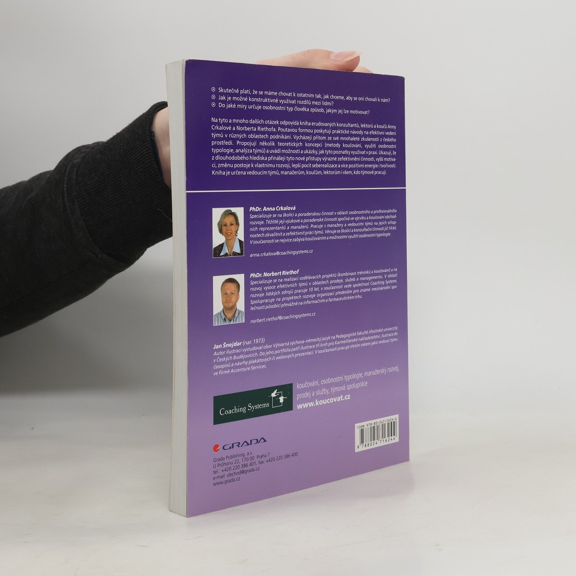 Skutečně platí, že se máme chovat k ostatním tak, jak chceme, aby se oni chovali k nám?Jak je možné konstruktivně využívat rozdílů mezi lidmi?Do jaké míry určuje osobnostní typ člověka způsob, jakým jej lze motivovat?Na tyto a mnoho dalších otázek odpovídá kniha erudovaných konzultantů, lektorů a koučů Anny Crkalové a Norberta Riethofa. Poutavou formou poskytují praktické návody na efektivní vedení týmů v různých oblastech podnikání. Vycházejí přitom ze své mnohaleté zkušenosti z českého prostředí. Propojují několik teoretických koncepcí (metody koučování, využití osobnostní typologie, analýza týmů) a uvádí možnosti a ukázky, jak tyto poznatky využívat v praxi. Ukazují, že z dlouhodobého hlediska přinášejí tyto nové přístupy výrazné zefektivnění činnosti, vyšší motivaci, změnu postoje k vlastnímu rozvoji, lepší pocit seberealizace a více pozitivní energie i tvořivosti. Kniha je určena vedoucím týmů, manažerům, koučům, lektorům i všem, kdo týmově pracují.