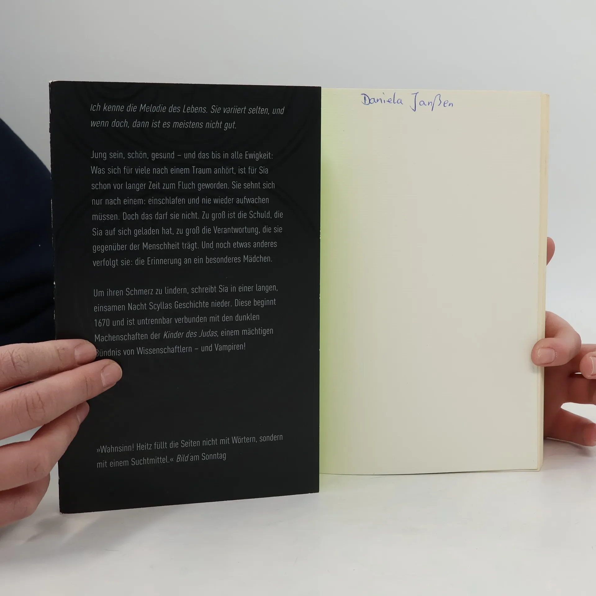 Leipzig im Jahr 2006. Sie ist die gute Seele des Krankenhauses. Sie steht denen bei, die in ihren letzten Stunden nicht allein sein sollen. Jeder, der die junge Frau am Bett eines Sterbenden wachen sieht, wird sie für einen Engel halten. Denn niemand weiß, wer sie wirklich ist … Jung sein, schön, gesund – und das bis in alle Ewigkeit: Was sich für viele nach einem Traum anhört, ist für Sia schon vor langer Zeit zum Fluch geworden. Sie sehnt sich nur nach einem: einschlafen und nie wieder aufwachen müssen. Doch das darf sie nicht. Zu groß ist die Schuld, die Sia auf sich geladen hat, zu groß die Verantwortung, die sie gegenüber der Menschheit trägt. Um den Schmerz zu lindern, schreibt Sia in einer langen, einsamen Nacht ihre Geschichte nieder. Sie beginnt 1670 und erzählt von einem kleinen Mädchen, das in die dunklen Machenschaften der »Kinder des Judas« verwickelt wurde, jenes mächtigen Bündnisses von Wissenschaftlern – und Vampiren!