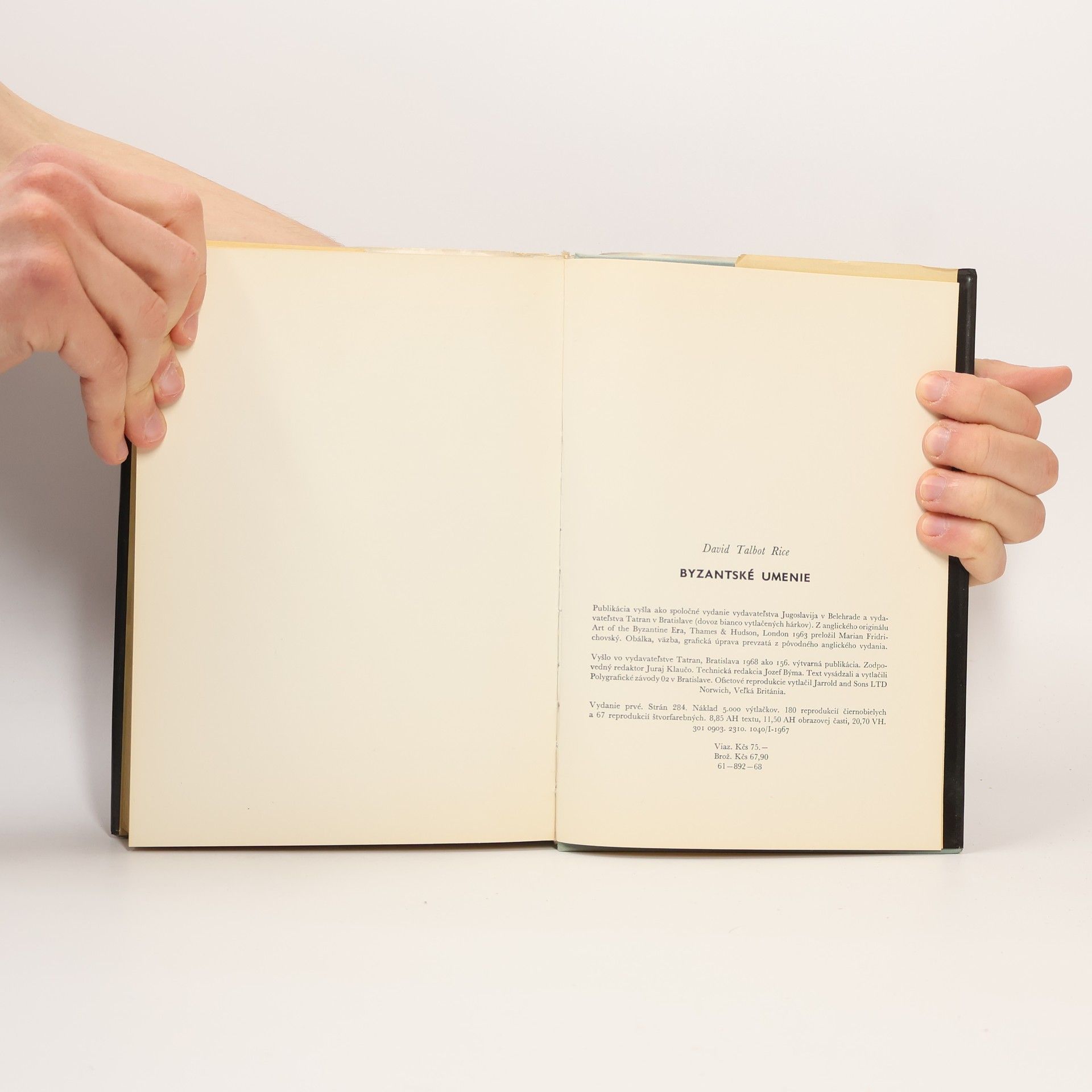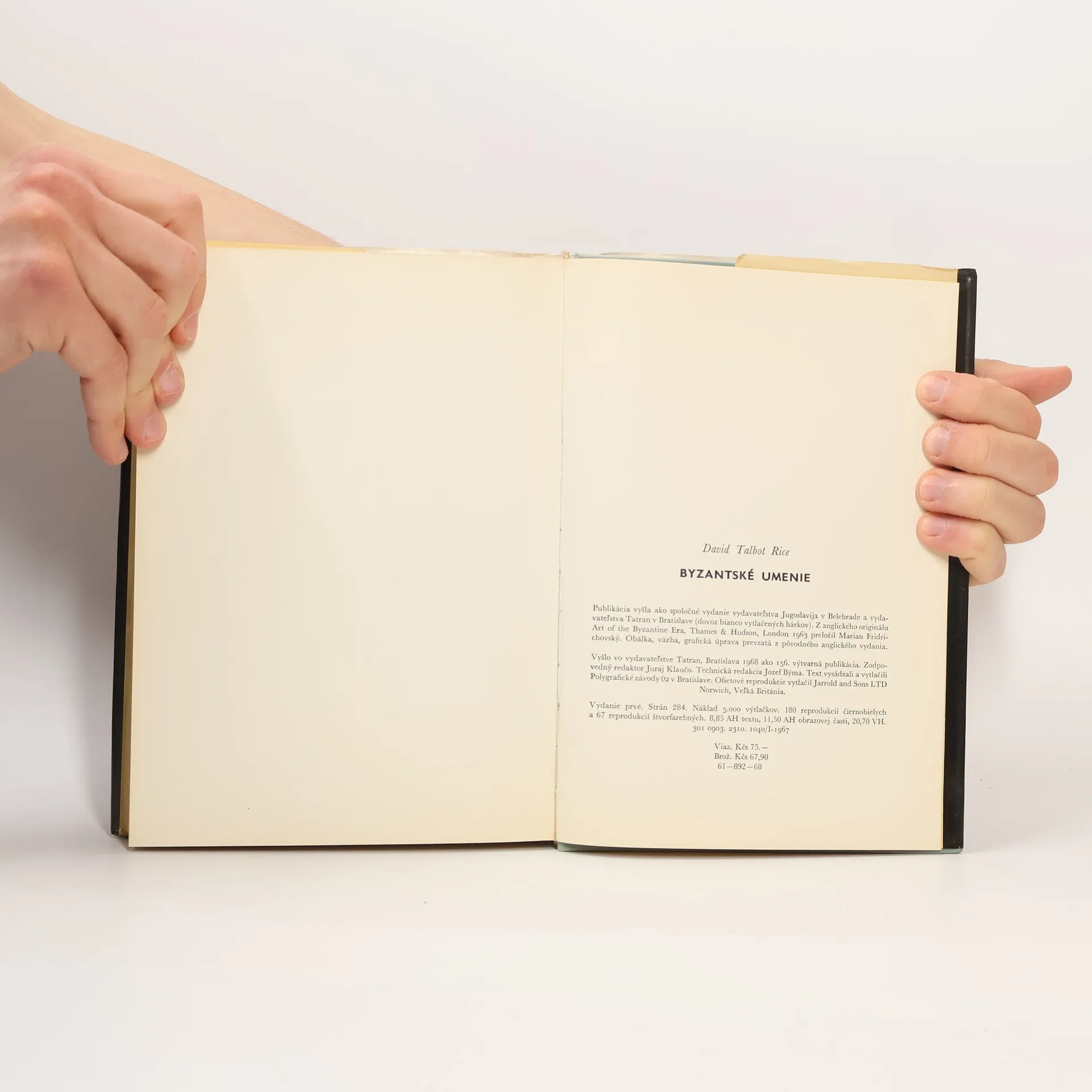 Čitateľom predkladáme ďalší zväzok série kníh preberaných od londýnskeho vydavateľstva THAMES AND HUDSON a vydaných y koprodukcii s vydavateľstvom JUGOSLAVIJA v Belehrade. Séria ako celok bude v našich pomeroch podstatným príspevkom k poznaniu najväčších pokladov dejín umenia všetkých čias a národov. David Talbot Rice je nepochybne jedným z najpovolanejších odborníkov na umenie Byzancie. V tejto práci zhŕňa výsledky rozsiahleho výskumu, zameriava sa na známe i menej známe umelecké dedičstvo byzantskej ríše, na jednotlivé druhy umenia od kamenných chrámov cez nádherné pomníky a kláštorné budovy až po keramiku, na exponáty roztrúsené od jedných až po druhé hranice tohto kedysi takého bohatého a mocného spoločenstva. Je aj brilantný štylista: čitateľ má pôžitok nielen z bohatého ilustračného materiálu, ale aj z pútavého, poučného a zaujímavého textu. Tak ako predchádzajúce zväzky série, aj táto kniha je na našom trhu ojedinelá a výnimočná. V knihe je 67 farebných a 180 čiernobielych reprodukcií.