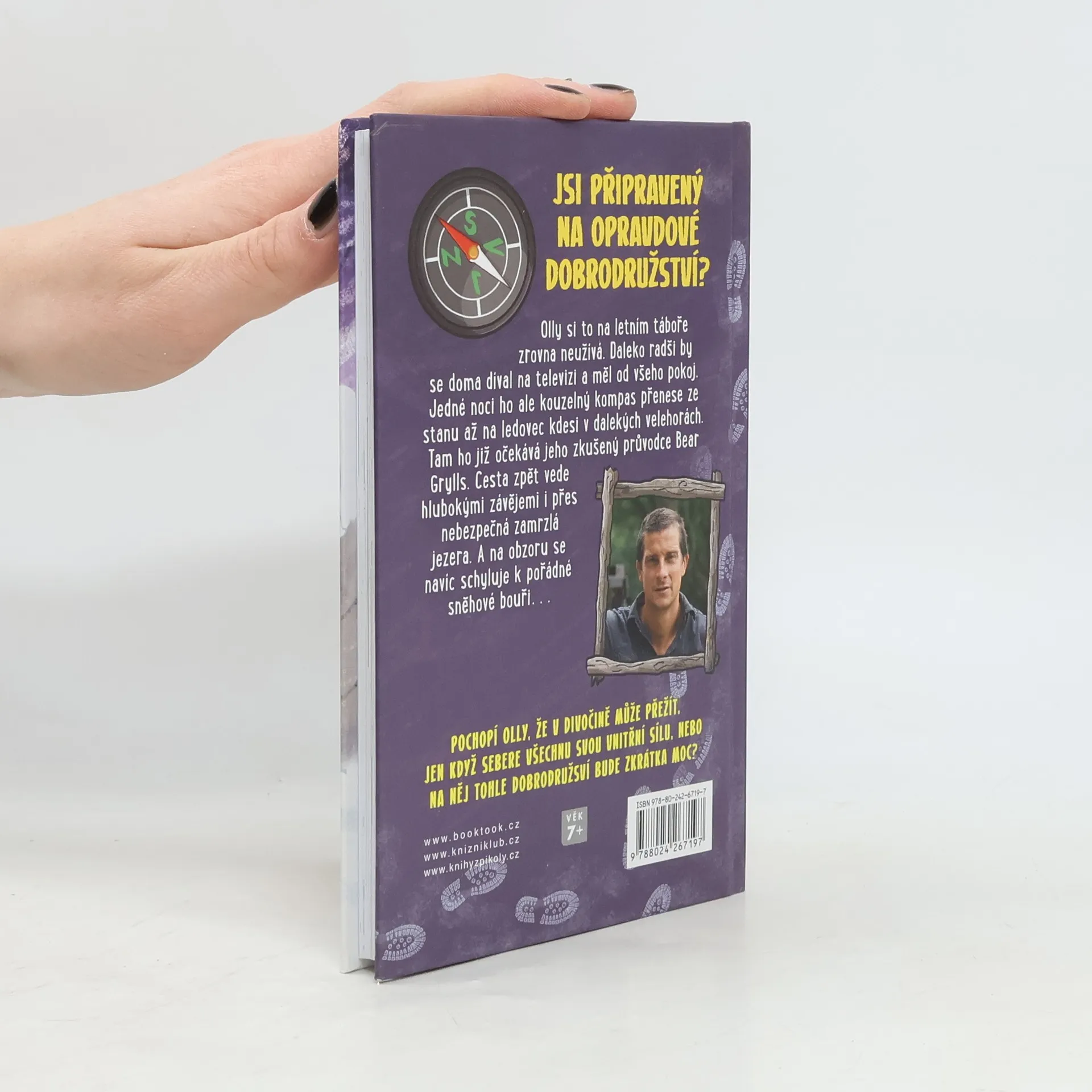 Olly si to na letním táboře rozhodně neužívá, daleko radši by se doma koukal na televizi a měl od všeho pokoj. Jedné noci ho ale kouzelný kompas přenese ze stanu až na ledovec kdesi v dalekých velehorách. Tam ho již očekává jeho zkušený průvodce Bear Grylls. Cesta zpět vede hlubokými závějemi a přes nebezpečná zamrzlá jezera. A na obzoru se navíc schyluje k pořádné sněhové bouři… Pochopí Olly, že v divočině přežije, jen když sebere všechnu vnitřní sílu, nebo na něj tohle dobrodružství bude zkrátka moc? Kniha je určena dětem od 7 let.