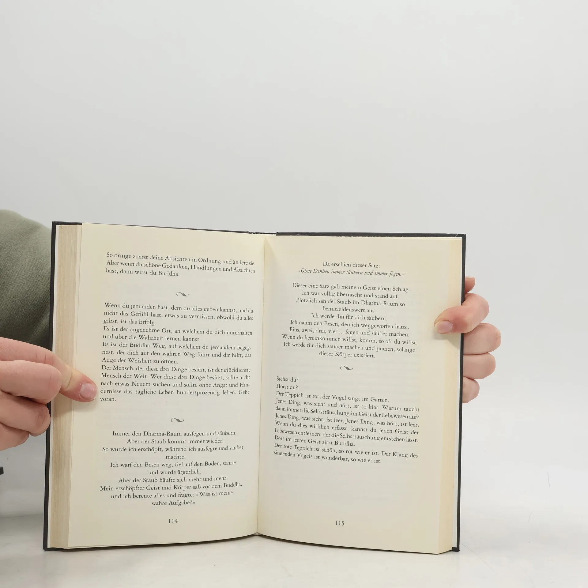 Es ist fast nicht möglich, dieses Buch in nüchternen Worten zu beschreiben. Die Autorin ist die erste und bislang einzige Frau, die in der Geschichte des koreanischen Buddhismus die Anerkennung als erleuchtete Dharma-Meisterin erhalten hat. Sie bringt dem westlichen Leser buddhistische Weisheiten nahe, auf eine Weise, die so liebevolle und tröstlich wirkt, daß man schon beim Lesen sanfter und ruhiger zu werden scheint. Das Buch ist wie Balsam für die Seele und gerade für Leser, die wenig Zeit haben, sich ernsthaft mit dem Buddhismus oder anderen Lehren zu beschäftigen, ideal. In kleinen Portionen bekommen die Leser eine Vorstellung der buddhistischen Lehren, kleine Geschichten, die zum Nachdenken anregen sollen oder die Achtsamkeit des Lesers wecken wollen. Sehr gut für alle, die sich wenig Zeit nehmen wollen oder können, die aber dennoch offen sind, eventuell sogar tiefgreifende innere Prozesse in Gang zu setzen. Das Buch kann ein einfacher, rascher Tröster sein, es kann aber auch zu einer echten Bewußtseinsveränderung führen, je nachdem, wie tief der Leser bereit ist, sich auf die sehr poetischen Texte einzulassen. Ein äußerst sanftes, liebevolles und freundliches Buch, das ein deutliches Gegengewicht zu der Art setzt, wie wir normalerweise mit uns und der Welt umgehen!