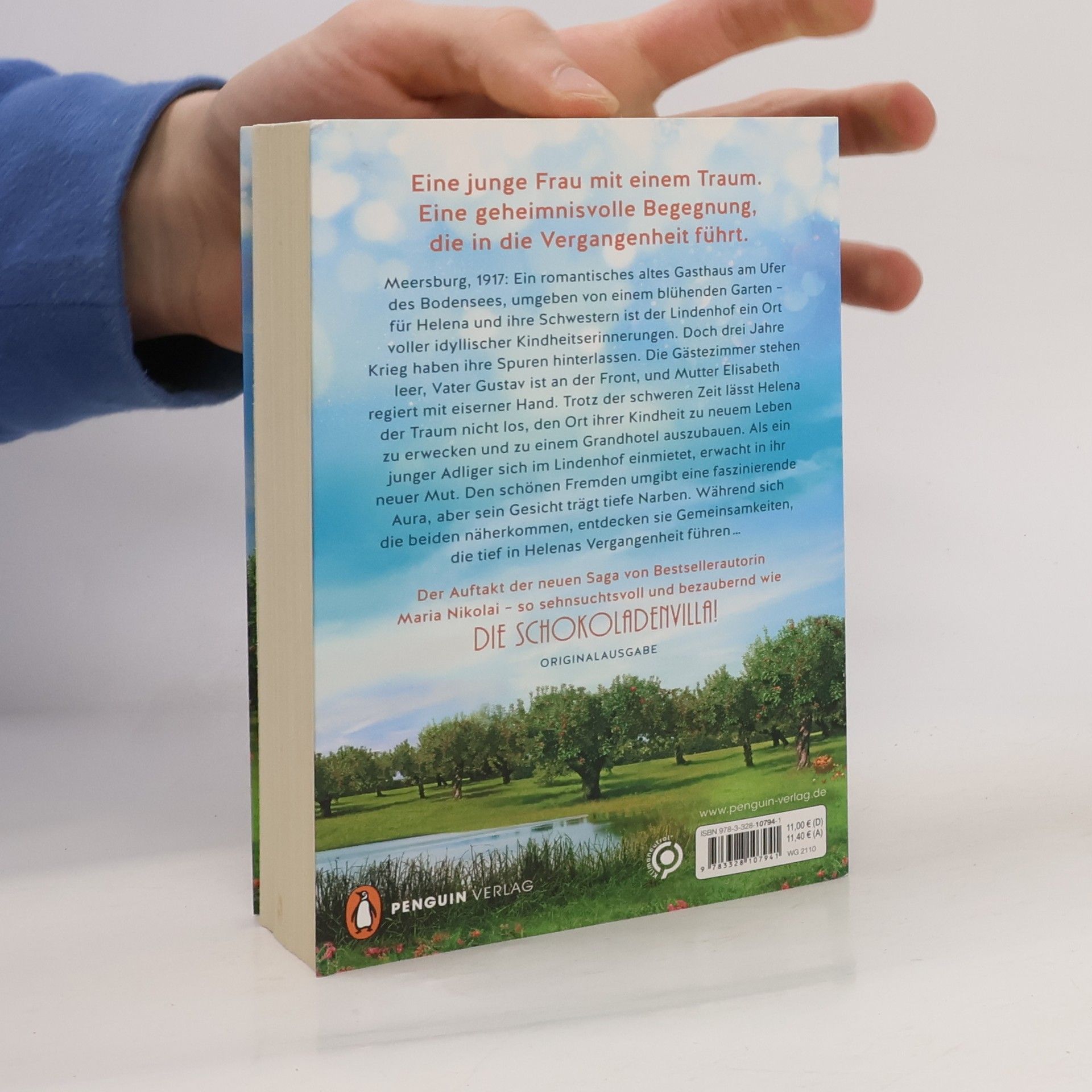 Nach »Die Schokoladenvilla«: Die neue historische Saga von Maria Nikolai! DREI SCHWESTERN DREI LEIDENSCHAFTEN EINE HEIMAT AM BODENSEE Meersburg, 1917: Ein romantisches altes Gasthaus am Ufer des Bodensees, umgeben von einem traumhaften Garten – für Helena Lindner und ihre Schwestern ist der Lindenhof ein Ort voller idyllischer Kindheitserinnerungen. Doch drei Jahre Krieg haben ihre Spuren hinterlassen. Die Gästezimmer stehen leer, Vater Gustav ist an der Front, und Mutter Elisabeth regiert mit eiserner Hand. Trotz der schweren Zeit lässt Helena der Traum nicht los, den Ort ihrer Kindheit zu neuem Leben zu erwecken und zu einem Grandhotel auszubauen. Als ein junger Adliger sich im Lindenhof einmietet, erwacht in ihr neuer Mut. Den schönen Fremden umgibt eine faszinierende Aura, aber sein Gesicht trägt tiefe Narben. Während sich die beiden näherkommen, entdecken sie Gemeinsamkeiten, die tief in Helenas Vergangenheit führen … Der Auftakt der neuen Saga von Bestsellerautorin Maria Nikolai – so genussvoll und bezaubernd wie »Die Schokoladenvilla«! In hochwertig veredelter Romance-Ausstattung, mit zwei leckeren Kuchenrezepten im Innenteil.