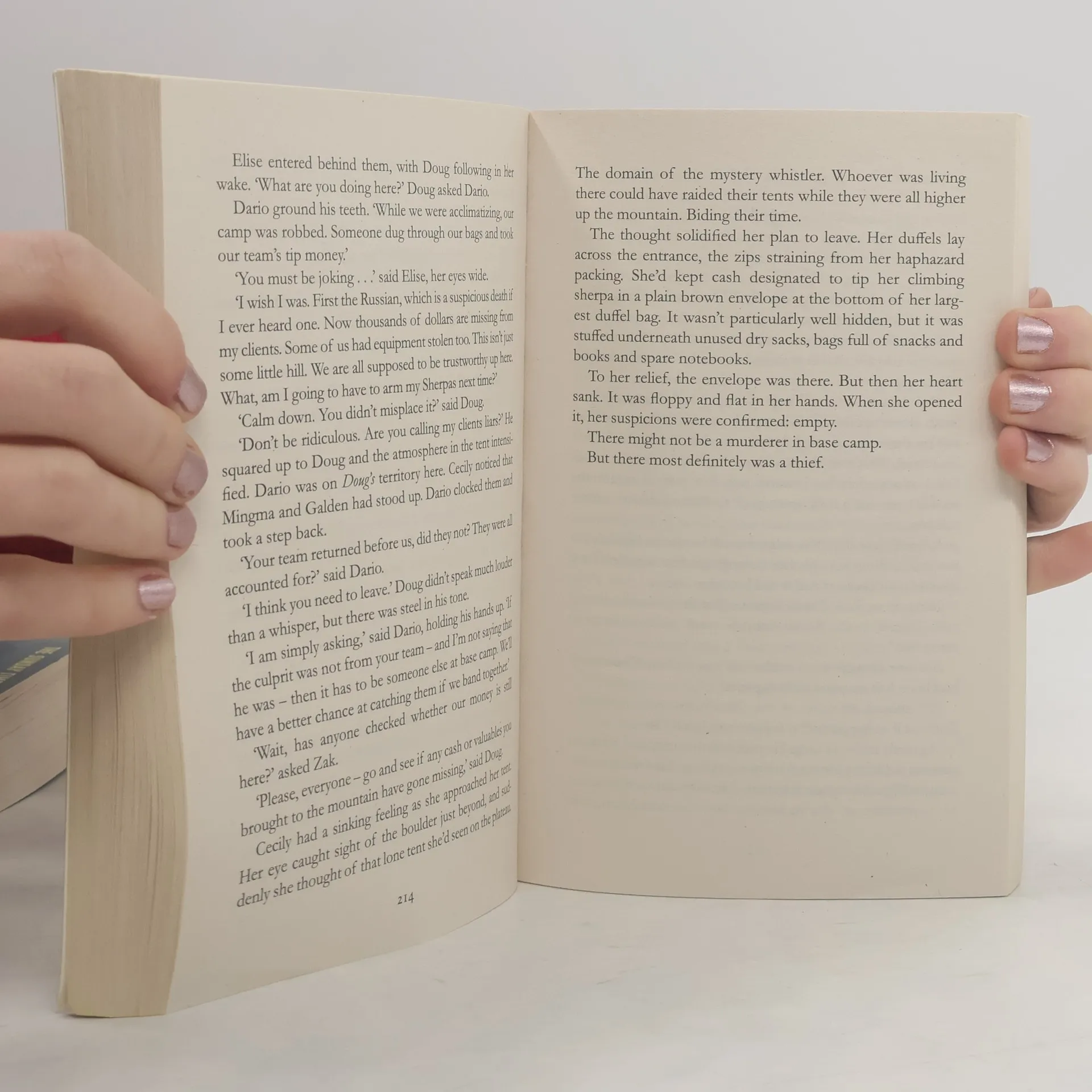 Úžasně napsaná kniha, kterou jsem přečetla téměř doslova jedním dechem. Během těch několika dnů jsem si dělala snad jen přestávky na spaní. Poprvé jsem držela v rukou knihu, jejíž příběh se odehrává v horolezeckém prostředí, čtení pro mě tedy bylo o to poutavější. Asi málokdo si dokáže představit, že pod vrcholem osmitisícovky v tzv. zóně smrti, kde se člověk potřebuje spoléhat na ostatní členy týmu, má za zády vraha...
