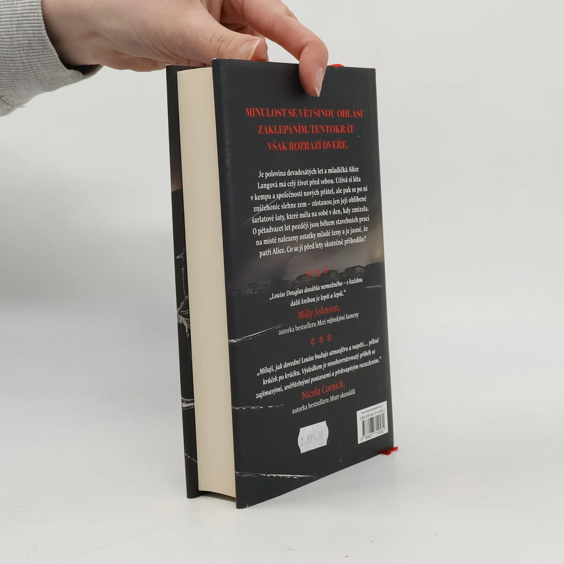 Nekonečně dlouhého parného léta roku 1995 si dvaadvacetiletá Alice Langová pronajme karavan na periferii prázdninového kempu v městečku Severn Sands. Spřátelí se s Marnie, stydlivou křehkou dívenkou, jejíž otec pracuje v kempu jako správce, a s Willem, jehož matka tu vede bar. Jednoho večera ale Alice ze svého karavanu zmizí. Nikde po ní není ani stopy, až na její šarlatové šaty, které se najdou vyvrženy na břehu moře. O čtvrt století později se prázdninový kemp prodá na stavbu nových domů a stavaři na pozemku vykopou lidské kosti. Nepochybně patří Alice. Životy Willa i Marnie jsou událostmi onoho léta nesmazatelně poznamenány. A nyní, když se Alice konečně našla, se oba musí popasovat s tajemstvími minulosti, vyřčenými lžemi a nesnesitelně těžkým břemenem viny. Jaký osud to Alice potkal? Kdo ji zabil? A proč? Louise Douglas, autorka mezinárodních bestsellerů, se vrací s dalším podmanivým románem, ze kterého čtenáři bude běhat mráz po zádech.
