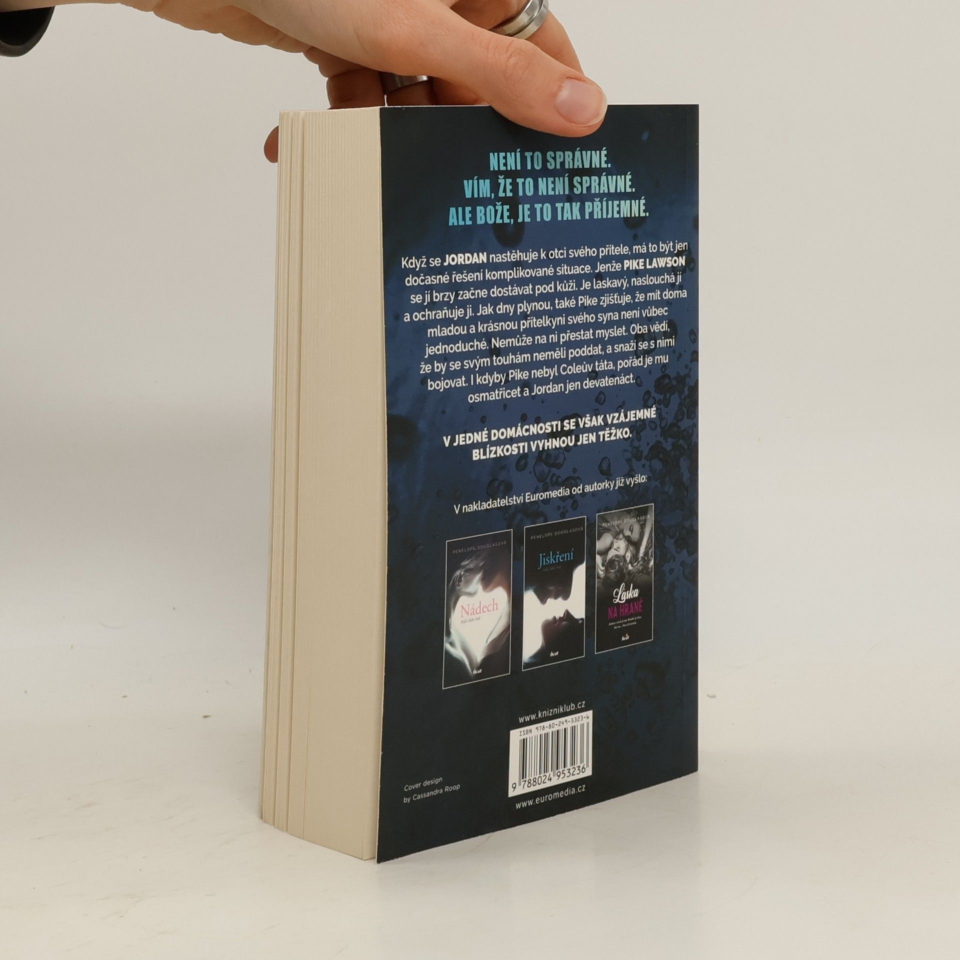 Romance od americké autorky vypráví příběh milé Jordan, která se ve svém životě snaží dělat jen správné věci. Její rodina je jí totiž odstrašujícím příkladem. Je život ale opravdu jenom černobílý? Když se Jordan nastěhuje k otci svého přítele, má to být jen dočasné řešení komplikované situace. Jenže Pike Lawson se jí brzy začne dostávat pod kůži. Oba vědí, že by se svým touhám neměli poddat, a snaží se s nimi bojovat. I kdyby to nebyl Coleův táta, pořád je mu osmatřicet a jí jen devatenáct. V jedné domácnosti se však vzájemné blízkosti vyhnou jen těžko. Nakladatelská anotace.
