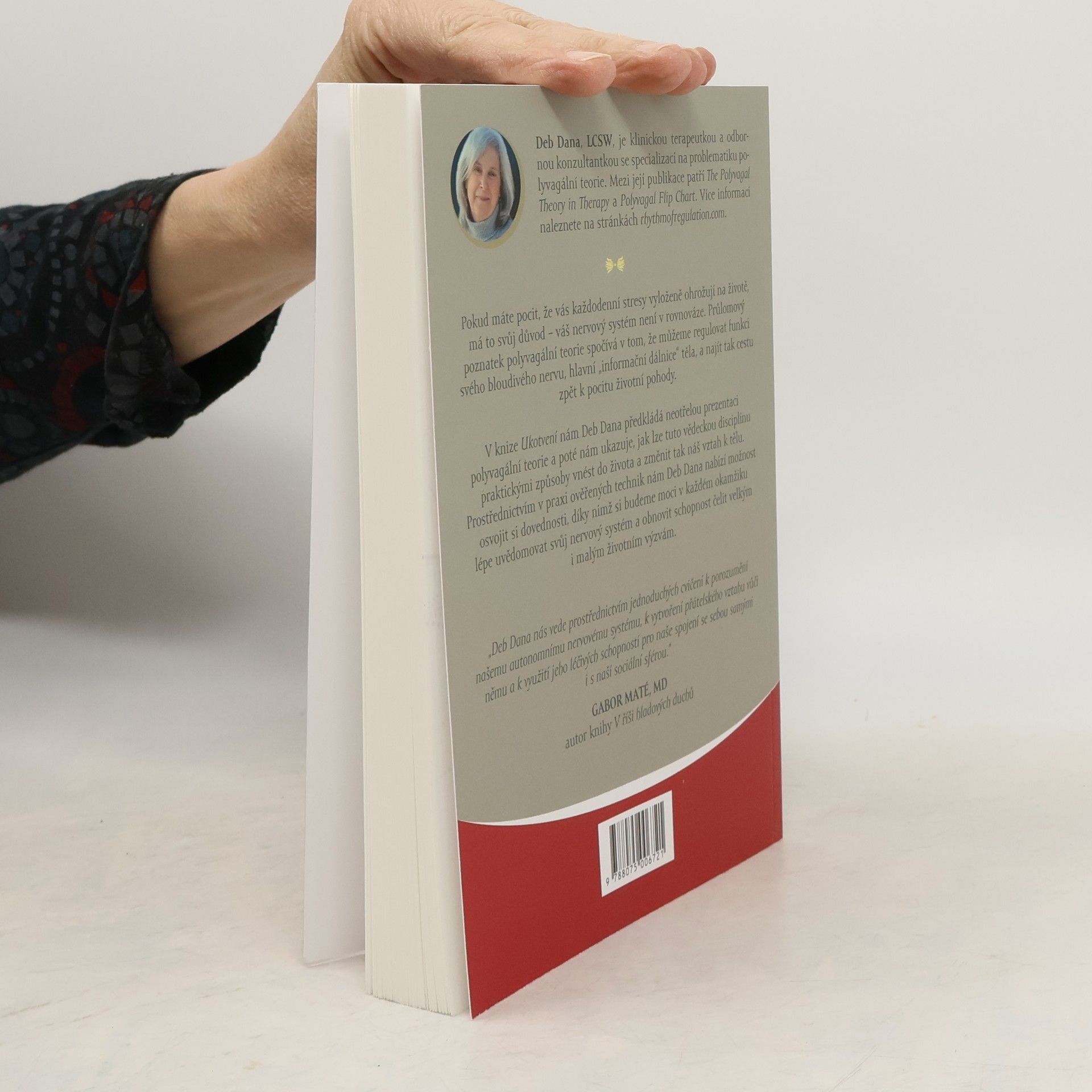 Pokud máte pocit, že vás každodenní stresy vyloženě ohrožují na životě, má to svůj důvod – váš nervový systém není v rovnováze. Průlomový poznatek polyvagální teorie spočívá v tom, že můžeme regulovat funkci svého bloudivého nervu, hlavní „informační dálnice“ těla, a najít tak cestu zpět k pocitu životní pohody. V knize Ukotvení nám Deb Dana předkládá neotřelou prezentaci polyvagální teorie a poté nám ukazuje, jak lze tuto vědeckou disciplínu praktickými způsoby vnést do života a změnit tak náš vztah k tělu. Prostřednictvím v praxi ověřených technik nám Deb Dana nabízí možnost osvojit si dovednosti, díky nimž si budeme moci lépe v každém okamžiku lépe uvědomovat svůj nervový systém a obnovit schopnost čelit velkým i malým životním výzvám.