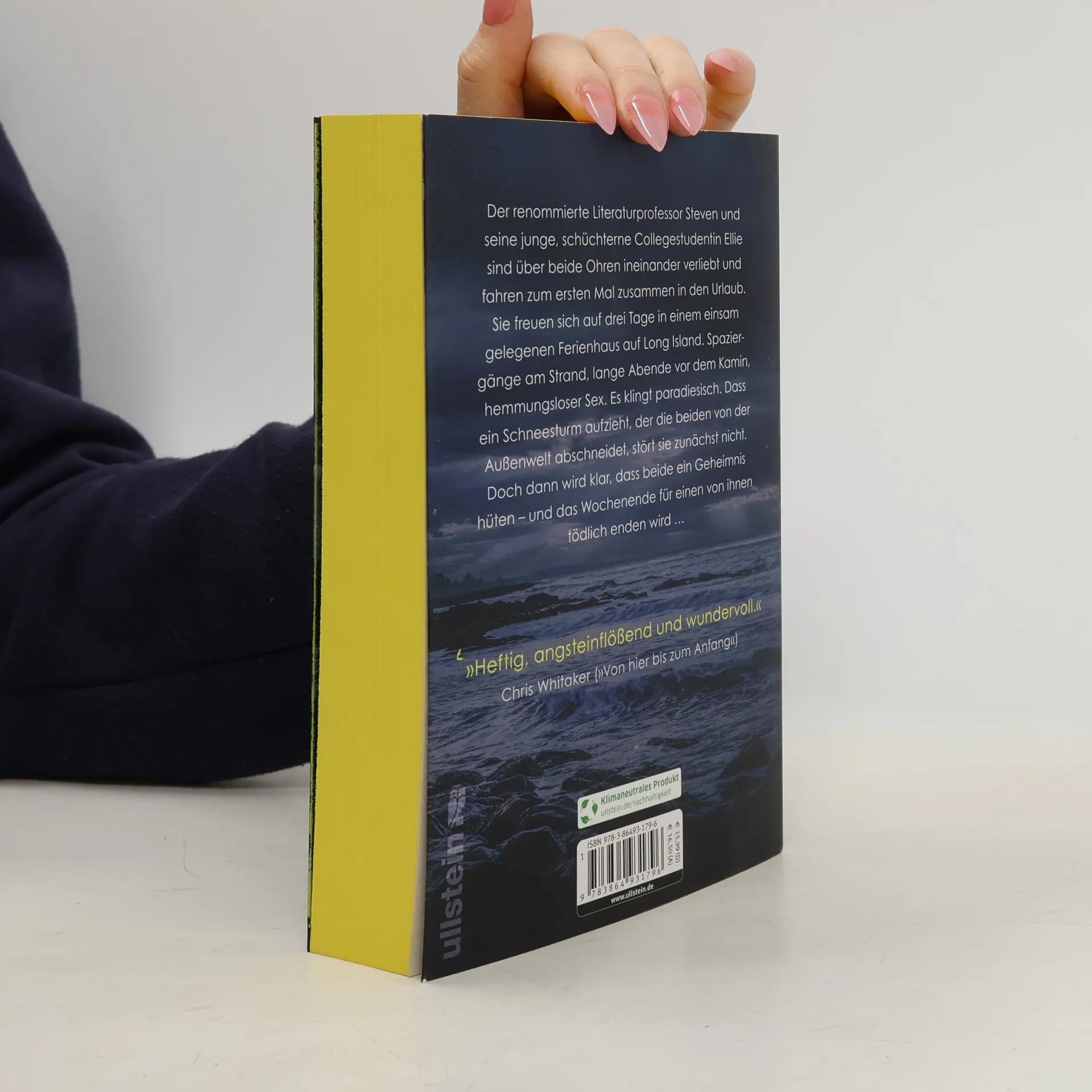 Es sollte der perfekte romantische Wochenendtrip sein. Doch nur einer wird ihn überleben. Der renommierte Literaturprofessor Steven und seine junge, schüchterne Collegestudentin Ellie sind über beide Ohren ineinander verliebt und fahren zum ersten Mal zusammen in Urlaub. Sie freuen sich auf drei Tage in einem einsam gelegenen Ferienhaus auf Long Island. Spaziergänge am Strand, lange Abende vor dem Kamin, hemmungsloser Sex. Es klingt paradiesisch. Dass ein Schneesturm aufzieht, der die beiden von der Außenwelt abschneidet, stört sie zunächst nicht. Doch dann wird klar, dass beide ein Geheimnis hüten – und das Wochenende für einen von ihnen tödlich enden wird … »Heftig, angsteinflößend, kühn und wundervoll. Legen Sie für dieses Buch alles zur Seite!« Chris Whitaker