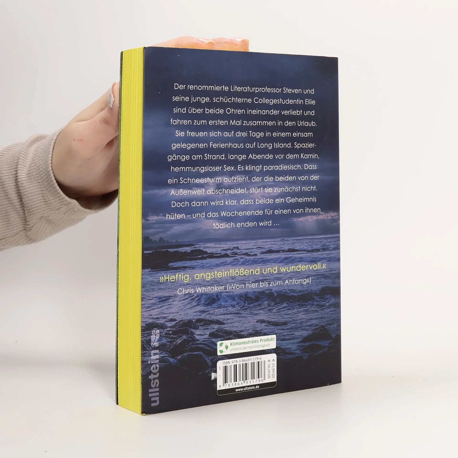 Es sollte der perfekte romantische Wochenendtrip sein. Doch nur einer wird ihn überleben. Der renommierte Literaturprofessor Steven und seine junge, schüchterne Collegestudentin Ellie sind über beide Ohren ineinander verliebt und fahren zum ersten Mal zusammen in Urlaub. Sie freuen sich auf drei Tage in einem einsam gelegenen Ferienhaus auf Long Island. Spaziergänge am Strand, lange Abende vor dem Kamin, hemmungsloser Sex. Es klingt paradiesisch. Dass ein Schneesturm aufzieht, der die beiden von der Außenwelt abschneidet, stört sie zunächst nicht. Doch dann wird klar, dass beide ein Geheimnis hüten – und das Wochenende für einen von ihnen tödlich enden wird … »Heftig, angsteinflößend, kühn und wundervoll. Legen Sie für dieses Buch alles zur Seite!« Chris Whitaker
